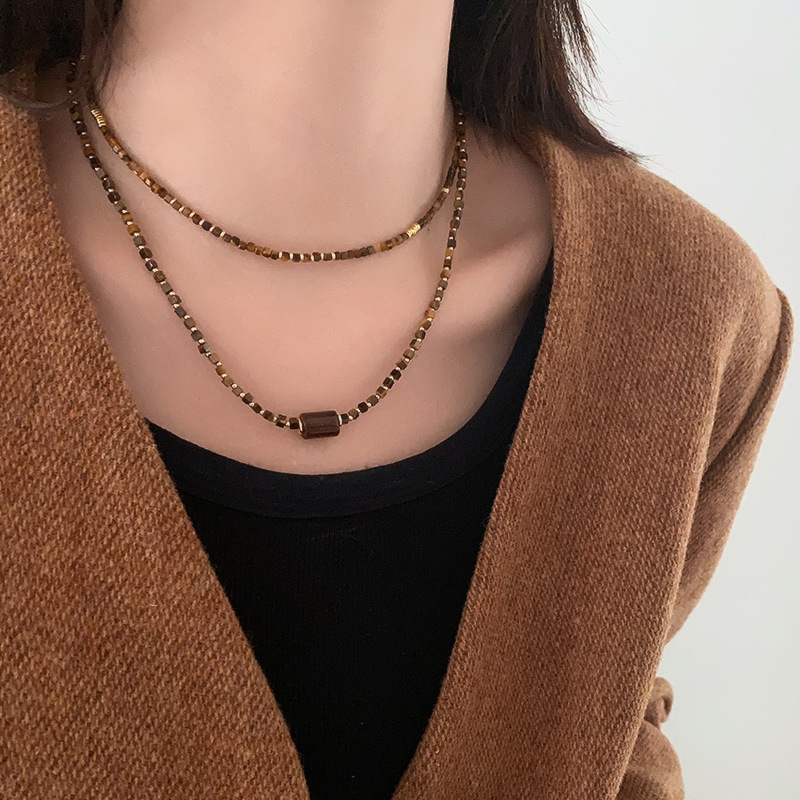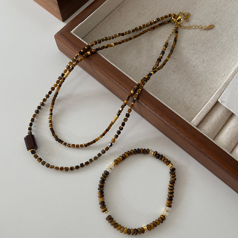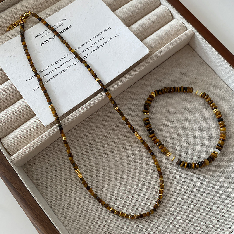 Product information:Color: Square necklace, Tiger Eye bracelet, cylindrical necklace Material: Natural Stone Shape: Geometry Popular elements: round