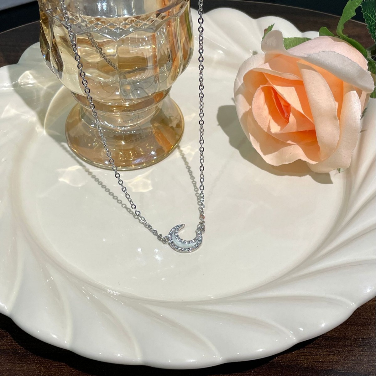Product information:Treatment Process: Diamond Color: 1053# full diamond crescent necklace-titanium steel necklace Applicable population: Female Chain style: cross chain Material: titanium steel Shape: Geometry Popular element: Moon