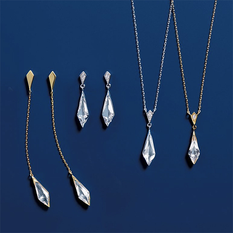 Product information:Treatment Process: Crystal inlay Color: gold white crystal necklace, gold starry sky necklace Chain style: cross chain Material: Silver Popular elements: Triangle and quadrilateral Shape: drop shape
