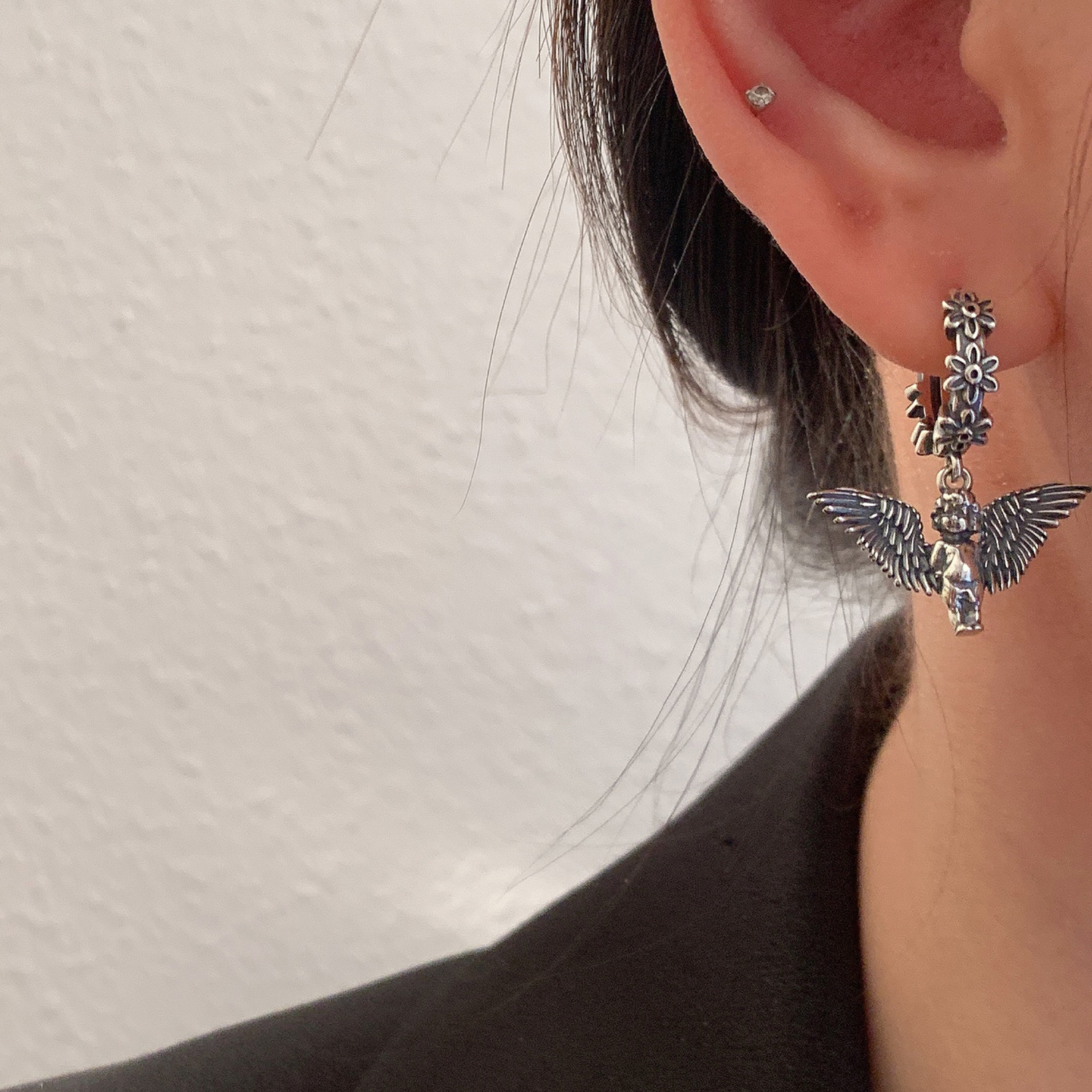 Product information:Inlaid material: unsetColor: Angel flower ear clips (copper plating antique silver)Material: CopperModeling: AngelPopular elements: flowers, national fashionSize: approximately 2.8 * 2.3cm