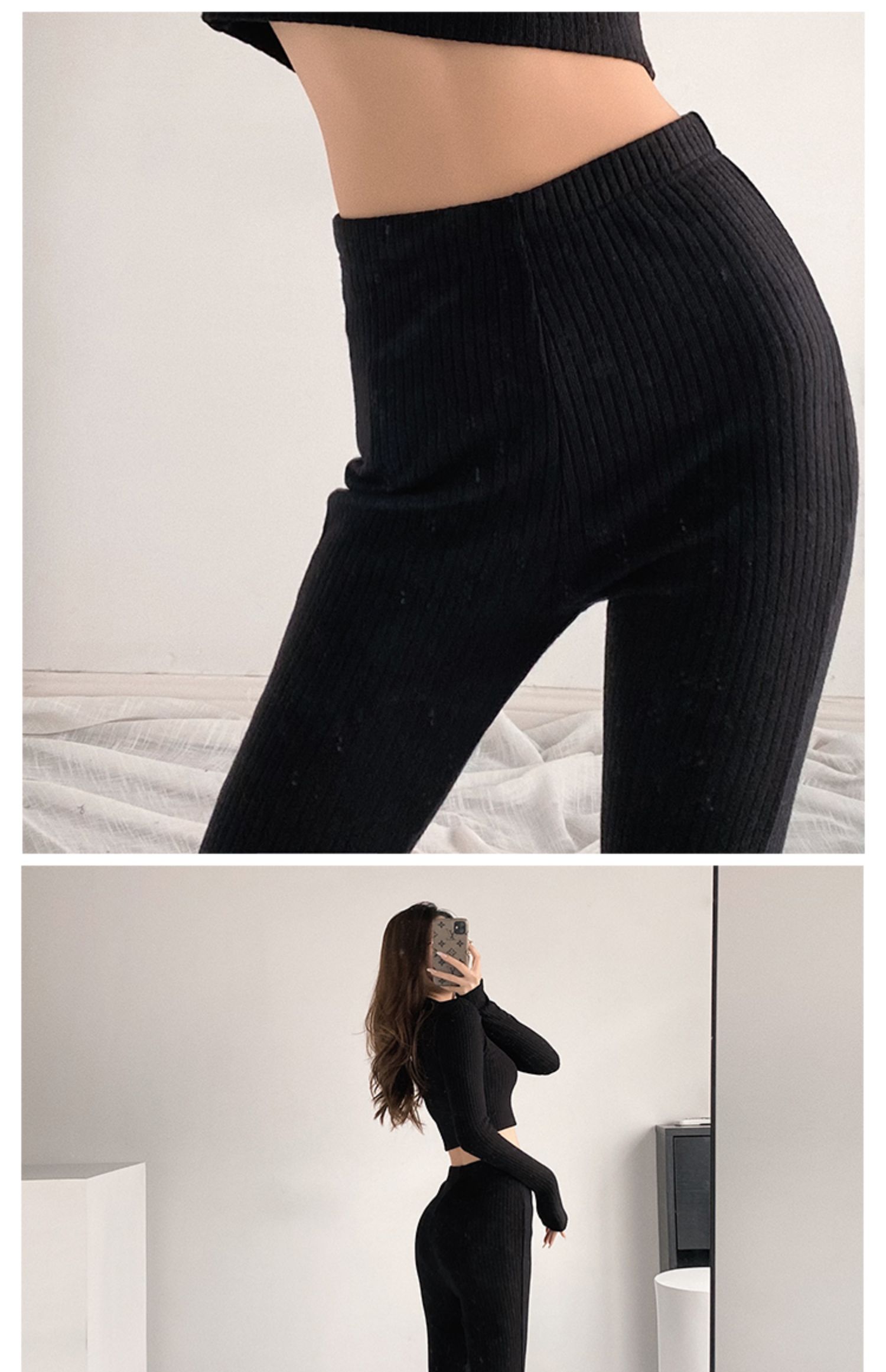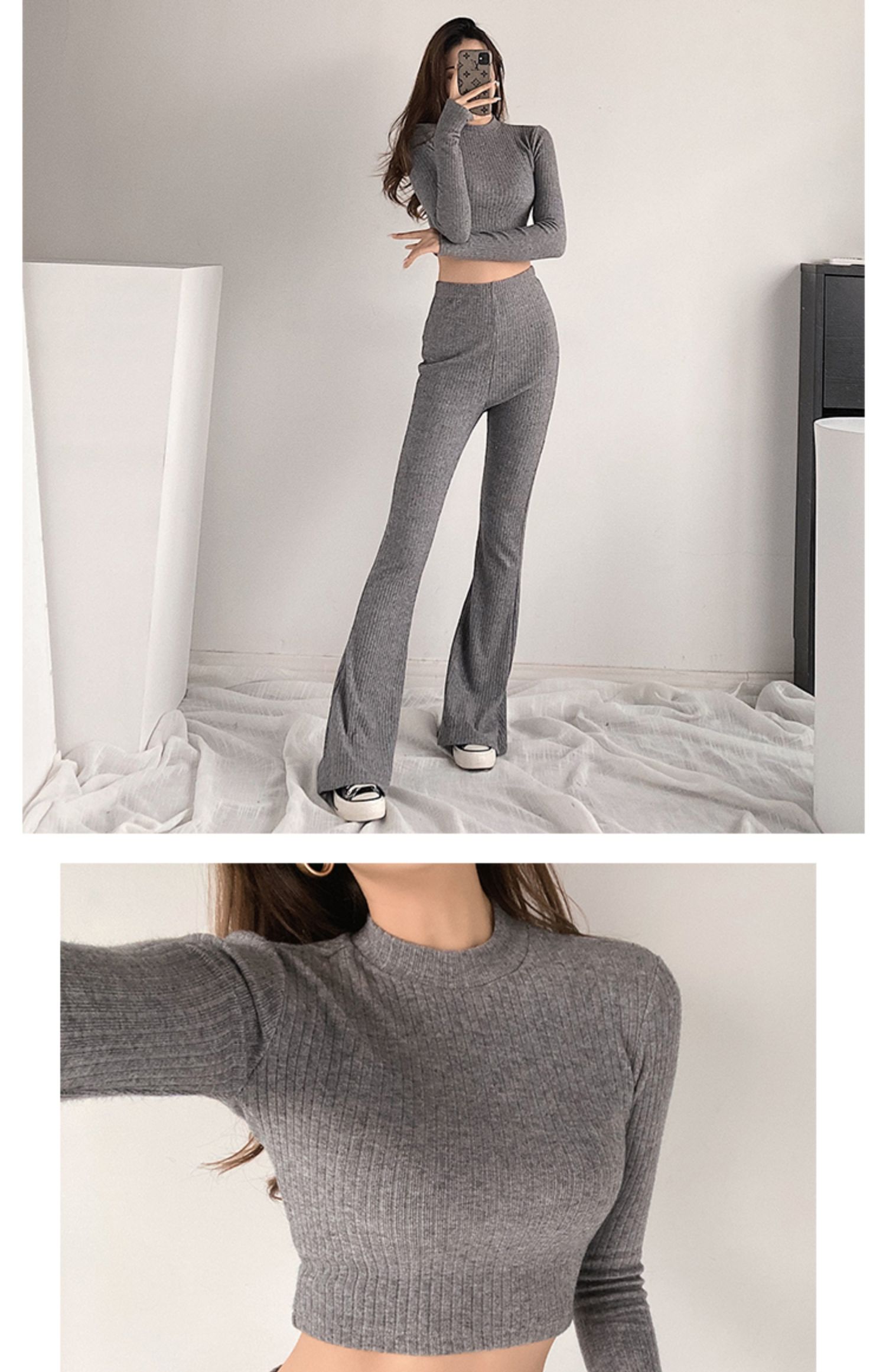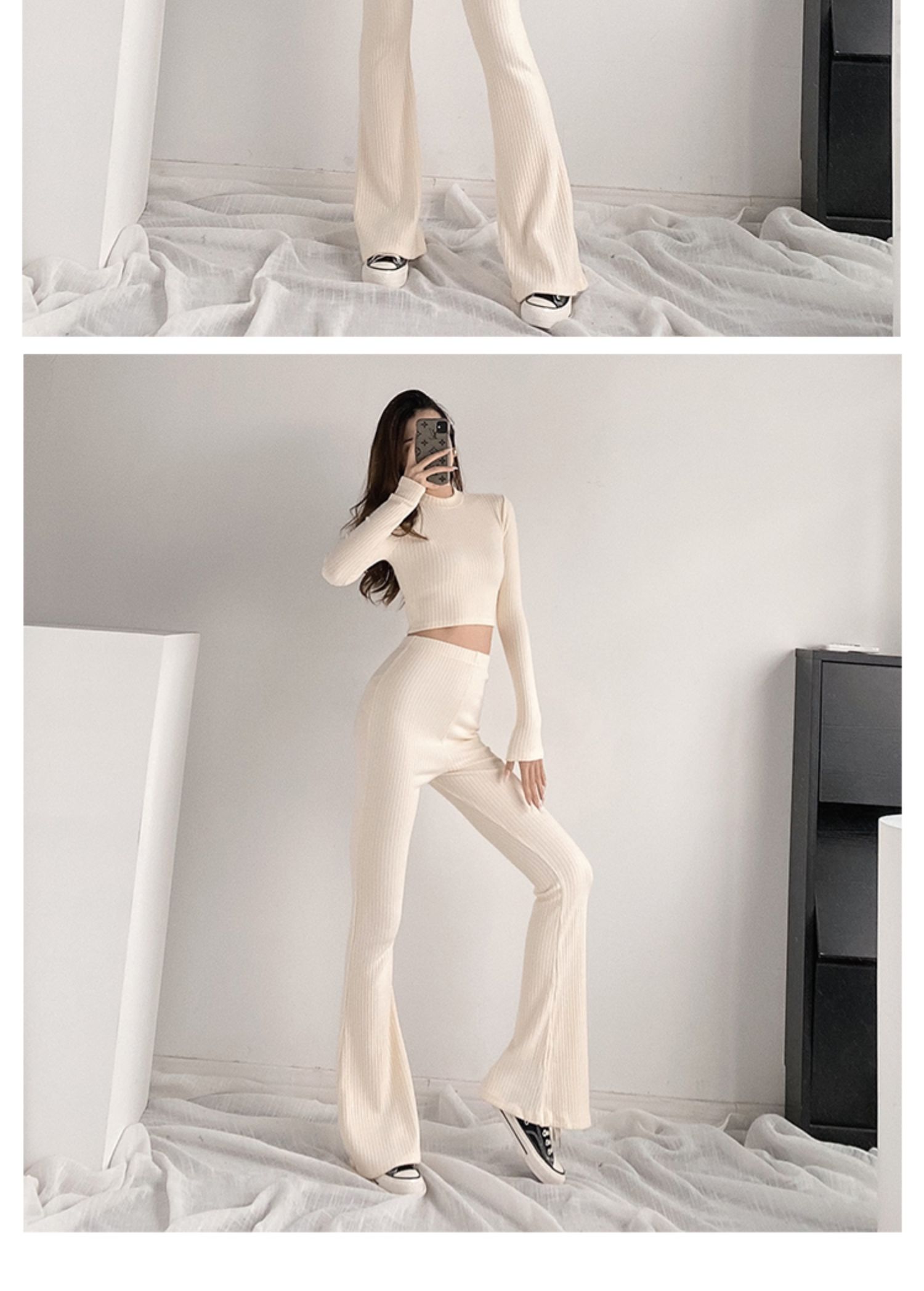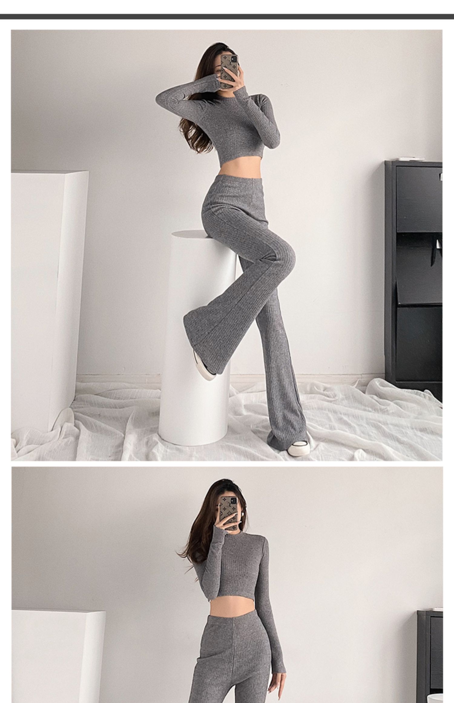 Color classification: (suit) melange gray, (suit) Black, (suit) creamy-white, (top) melange gray, (top) Black, (top) creamy-white, (pants) melange gray, (pants) black, (pants) creamy-white