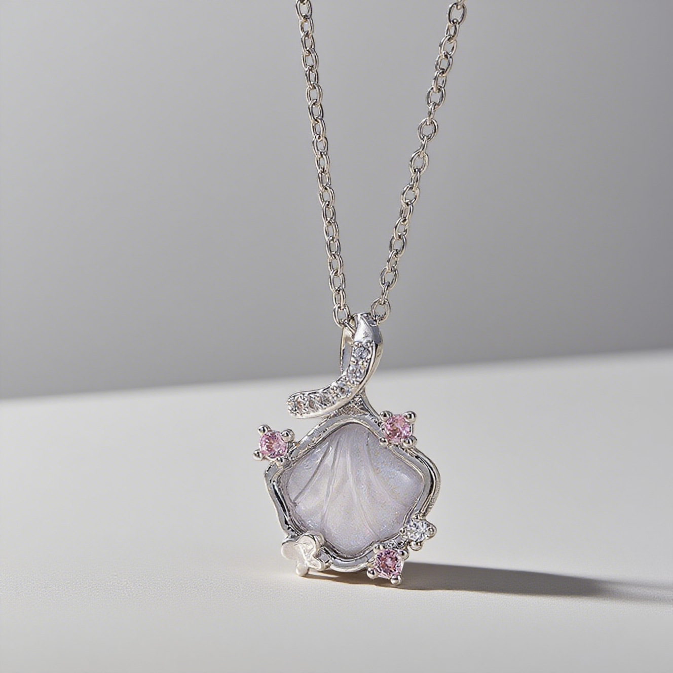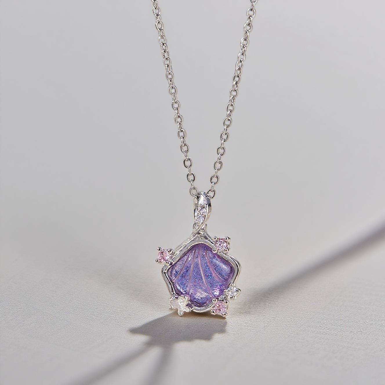 Color: [8011] Diamond White shell necklace silver, [8012] Diamond the purple shell necklace silver, [8013] Diamond pink shell necklace gold