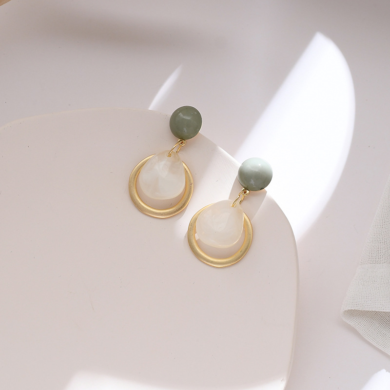 Color: Green 925 silver needle stud earrings, orange 925 silver needle stud earrings