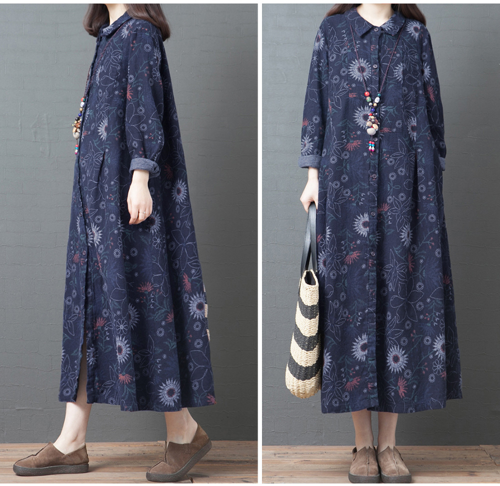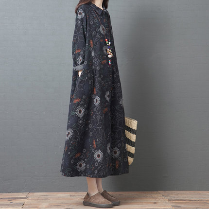 Product information:Style category: dressStyle: literature and artPattern: FlowersMain fabric composition: cottonColor: black, red, blueSize information:Size: M, L , XL , 2XL Packing list:Dress * 1pcs