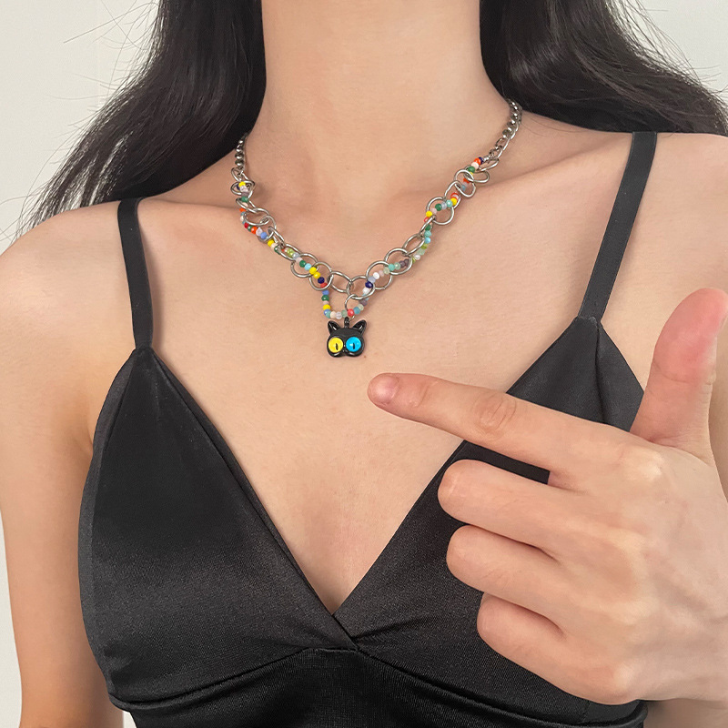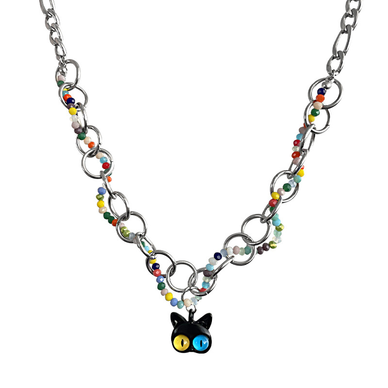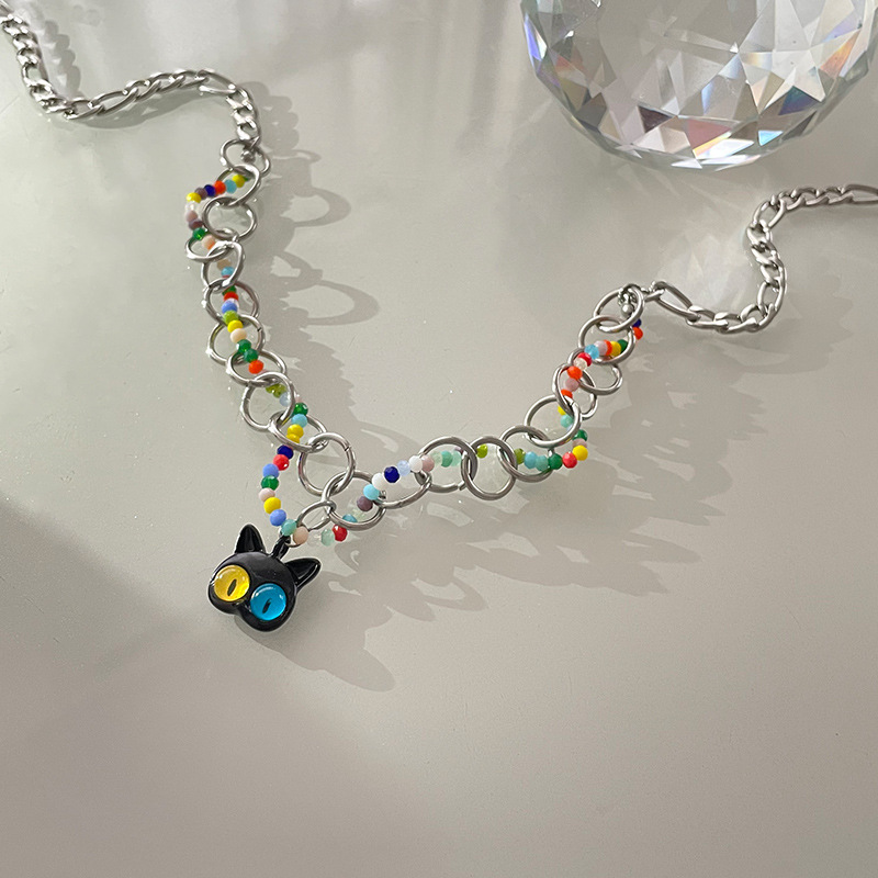 Color: colorful beaded Cat Circle necklace