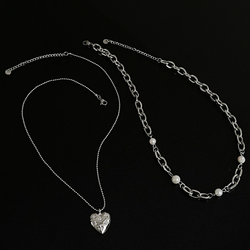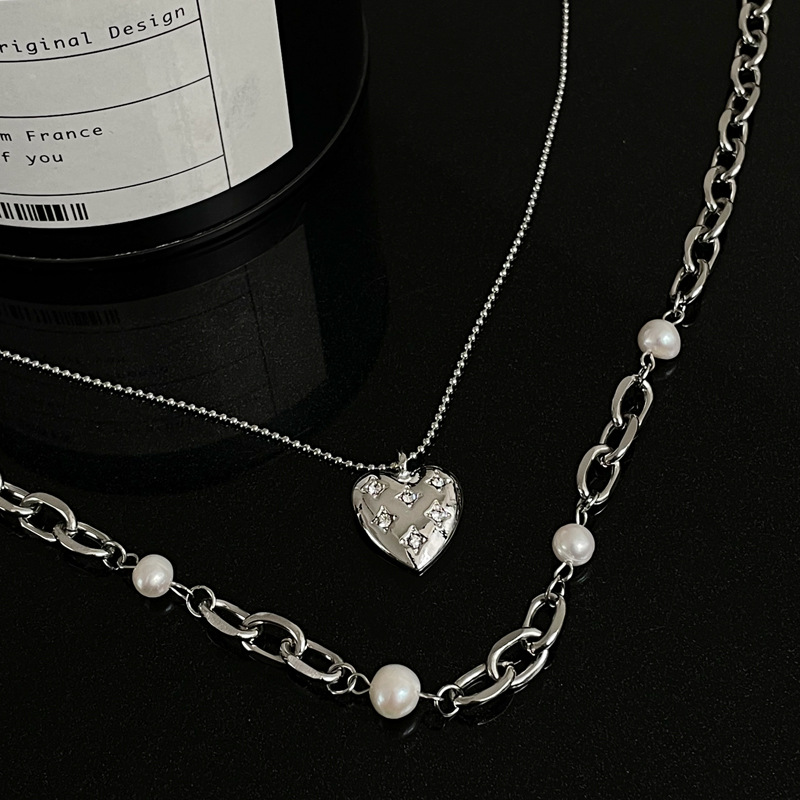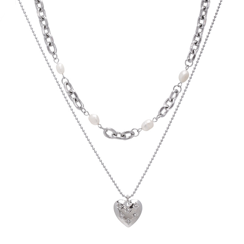 Color: heart-shaped multi-part Pearl double-layer necklace