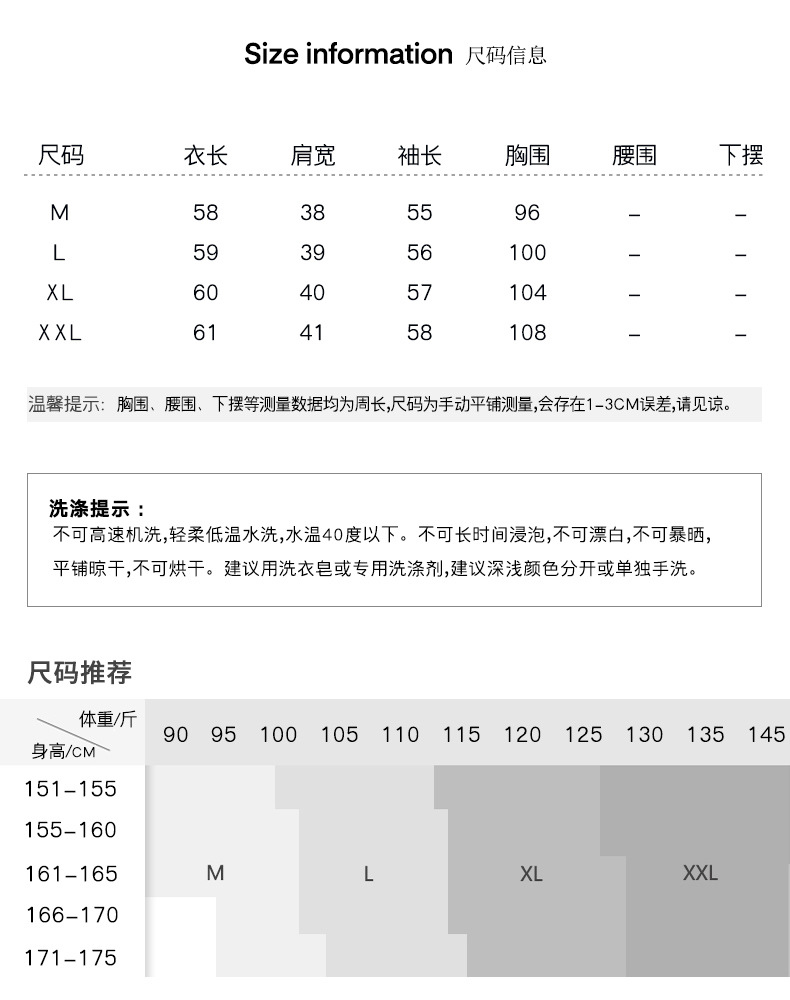 1. Asian sizes are 1 to 2 sizes smaller than European and American people. Choose the larger size if your size between two sizes. Please allow 2-3cm differences due to manual measurement. 2. Please check the size chart carefully before you buy the item, if you don't know how to choose size, please contact our customer service. 3.As you know, the different computers display colors differently, the color of the actual item may vary slightly from the following images.