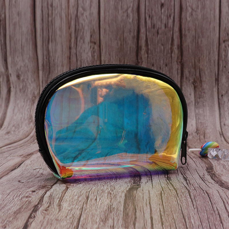 Name: Small semi-round bagOpen bag: zipperMaterial: TPU laserStyle: fashion simpleSpecifications: Small 13*6*10cmColor: Symphony LaserCapacity: mobile phone / skin care products / lip glaze, etc.