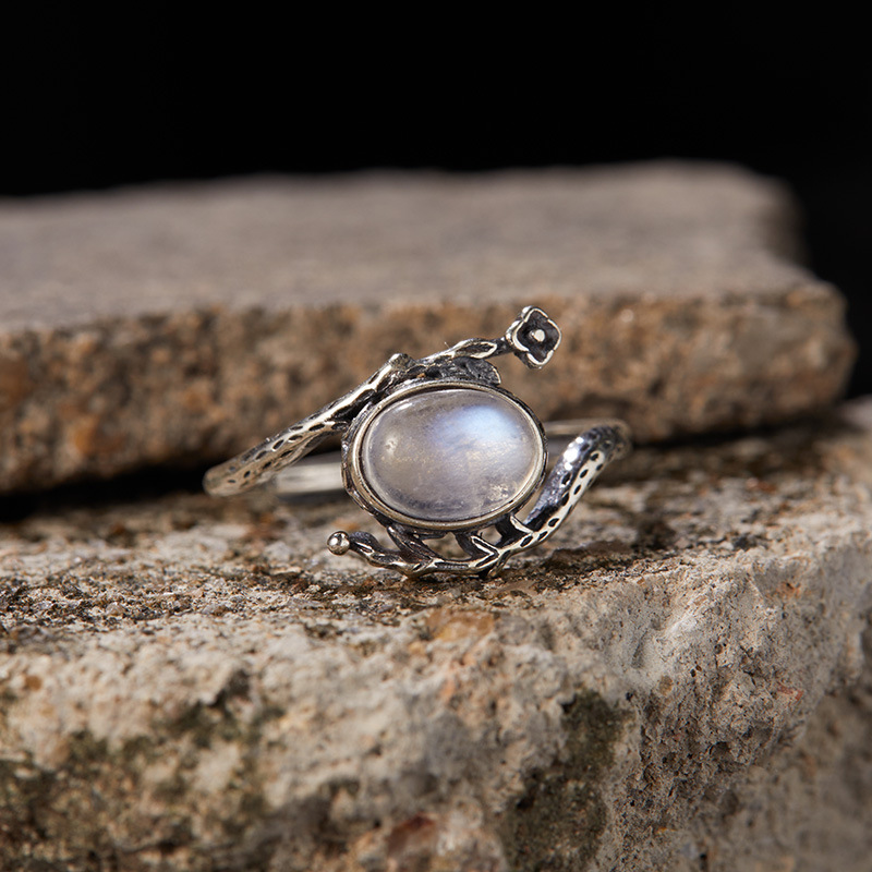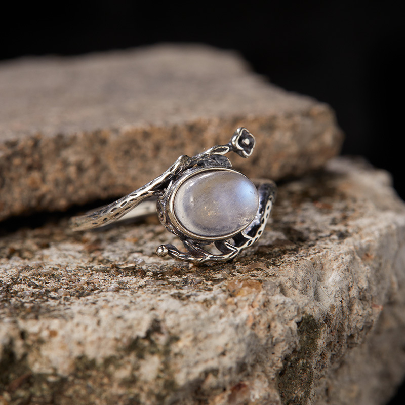 Product information:Type: open mouth Treatment Process: inlaid gem Color: natural Moonstone Applicable population: Female Style: Ring Material: Silver Shape: Geometry Popular elements: Oval, Moonstone