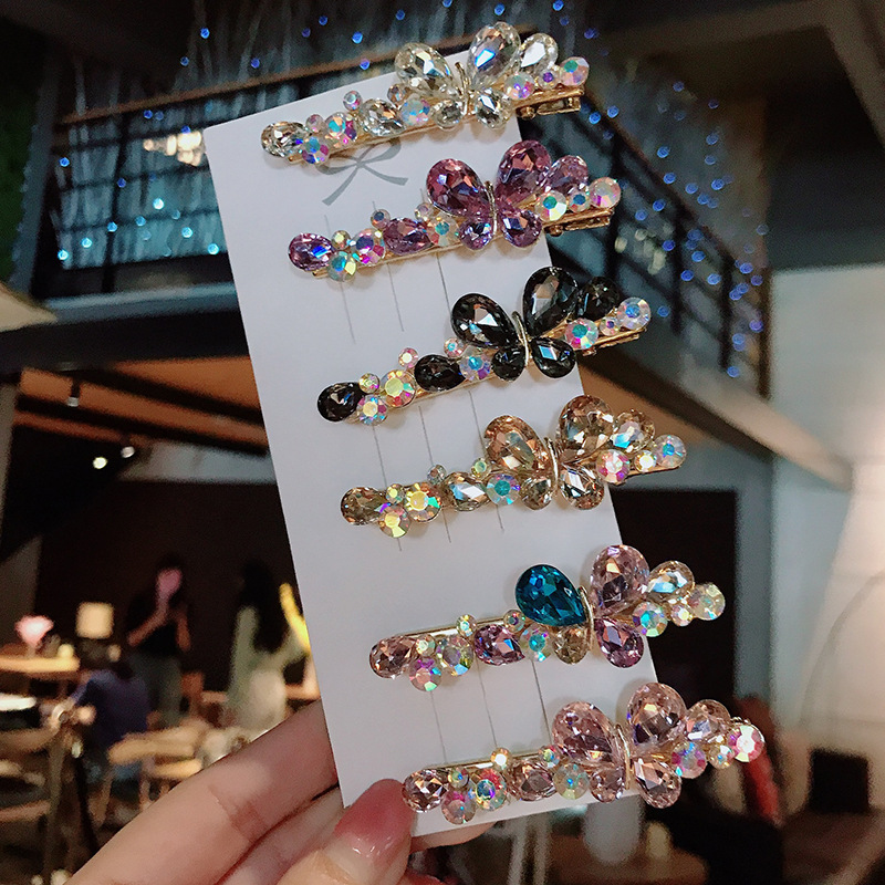 [Style] K9 Crystal Butterfly Hair Clip, Side Clip[Material] Alloy, Czech diamond, K9 crystal[Color] pink, gray, white, purple, champagne, color