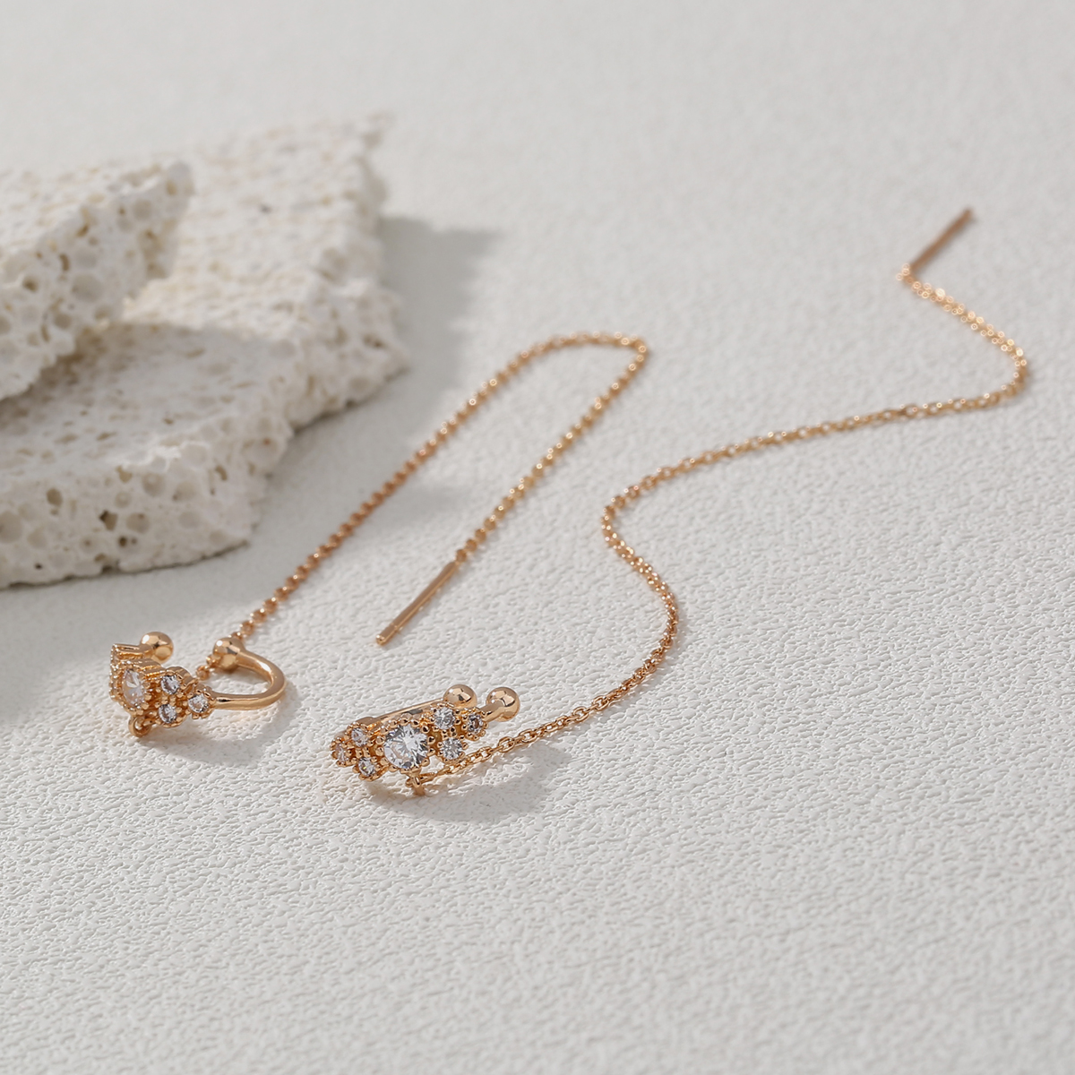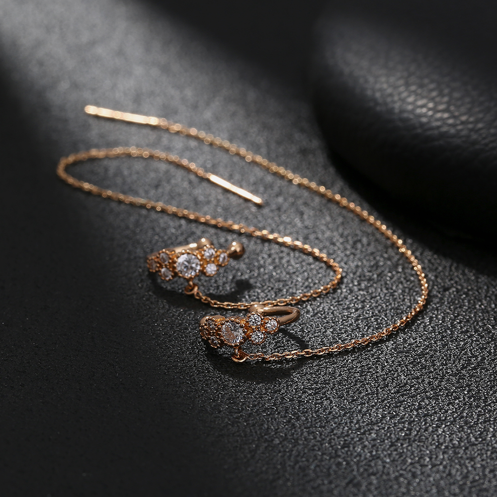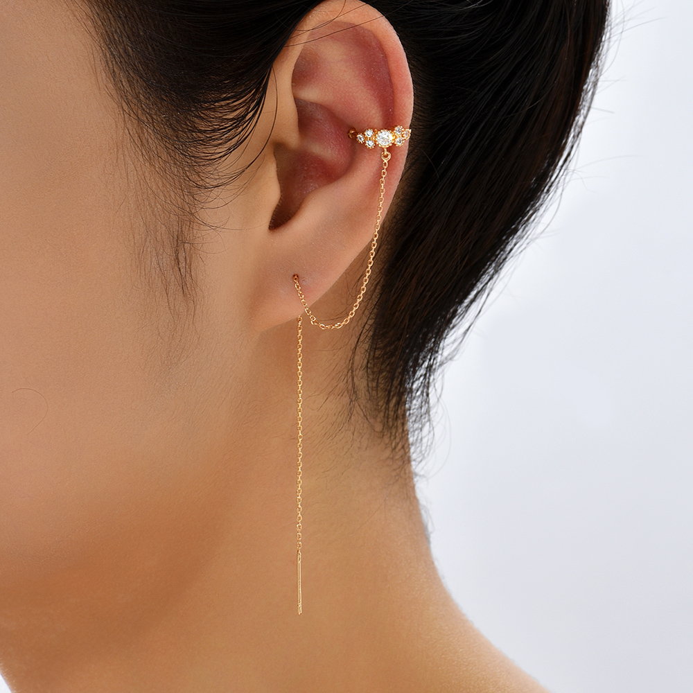 Geometric Tassel Earrings Women's Long Diamond Inlaid New Fashion Net Red Temperament Earrings Face Show Thin Ear Line Jewelry