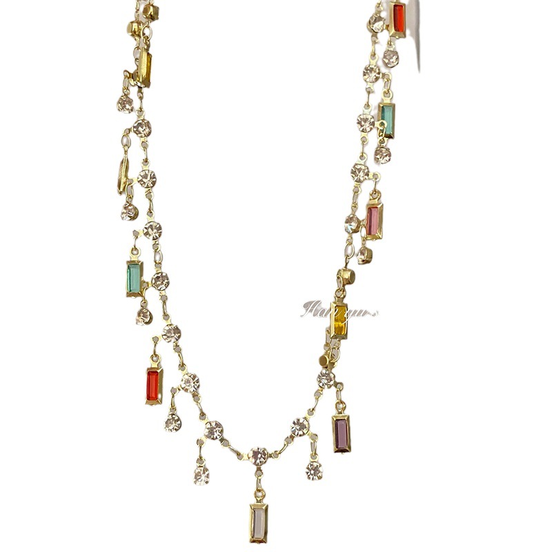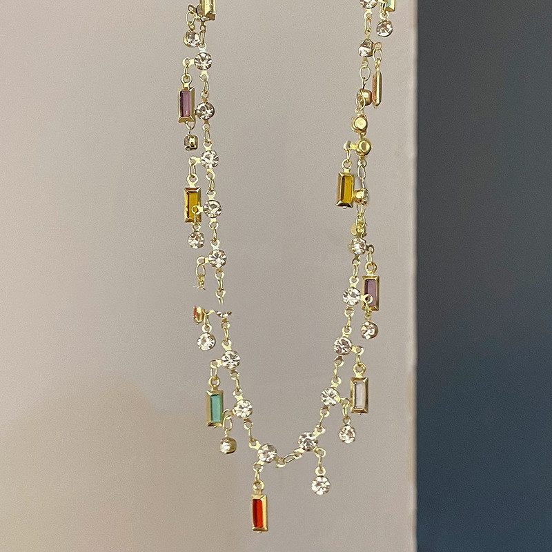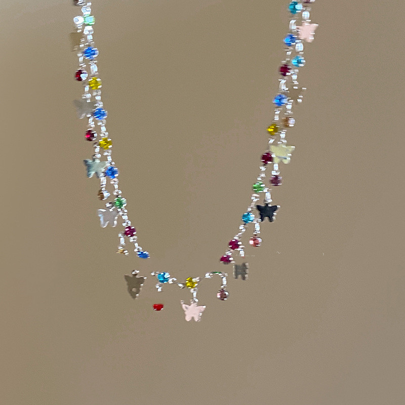 Color: Colorful zircon butterfly necklace, rainbow tassel necklace