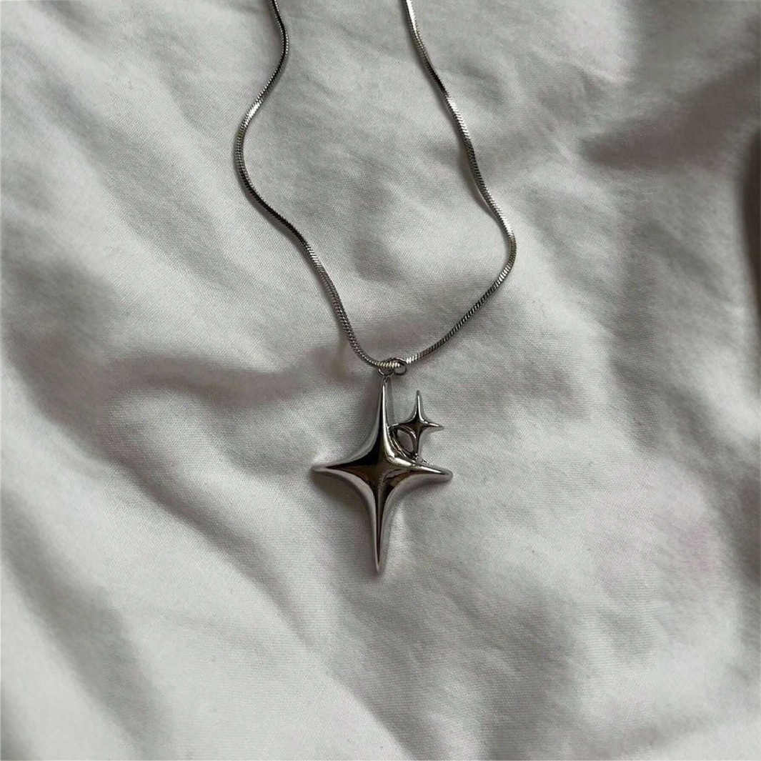 Product information:Treatment Process: Electroplating Color: Steel Applicable population: Female Pendant material: Stainless steel Chain style: Regular chain Material: Stainless steel Shape: Star Perimeter: 41cm (inclusive)-50cm (inclusive)