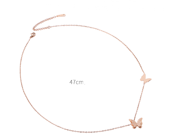 Name: Butterfly NecklaceMaterial: titanium steelSize: Chain length is about 47cm (including 3cm extension chain), large butterfly is about 1.5cm in diameter, large butterfly is about 1.1cm in diameter