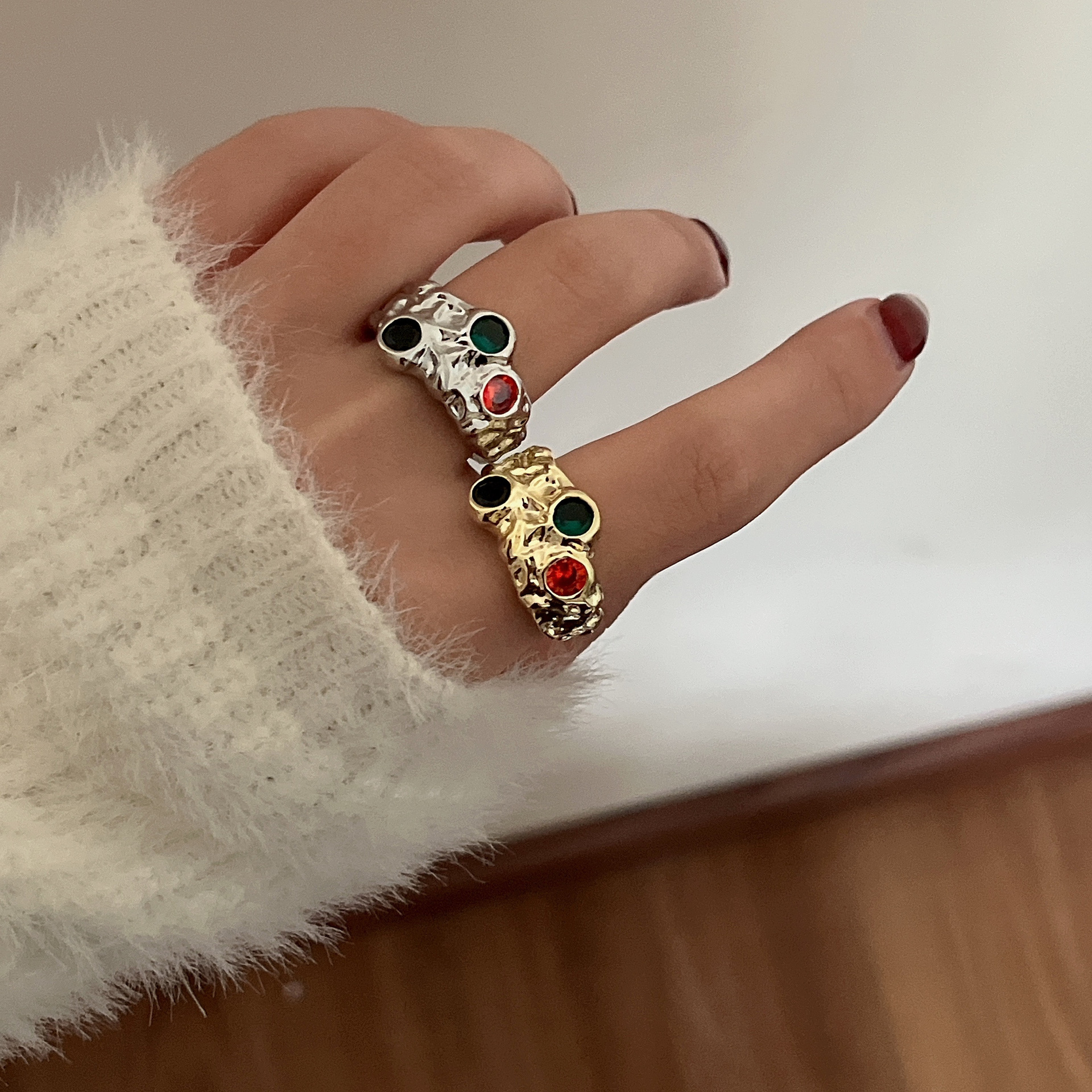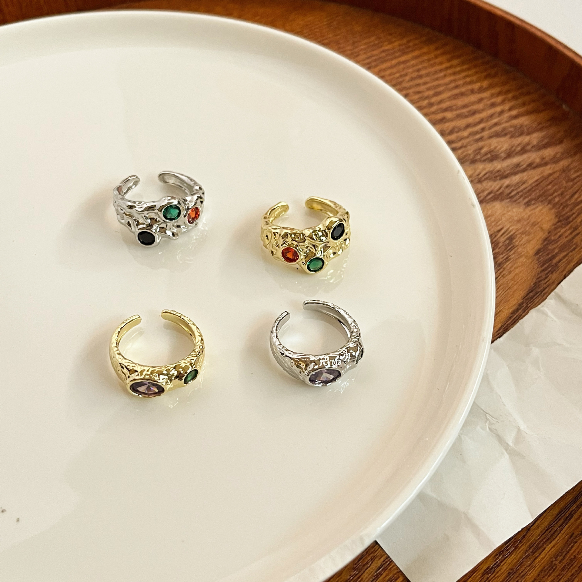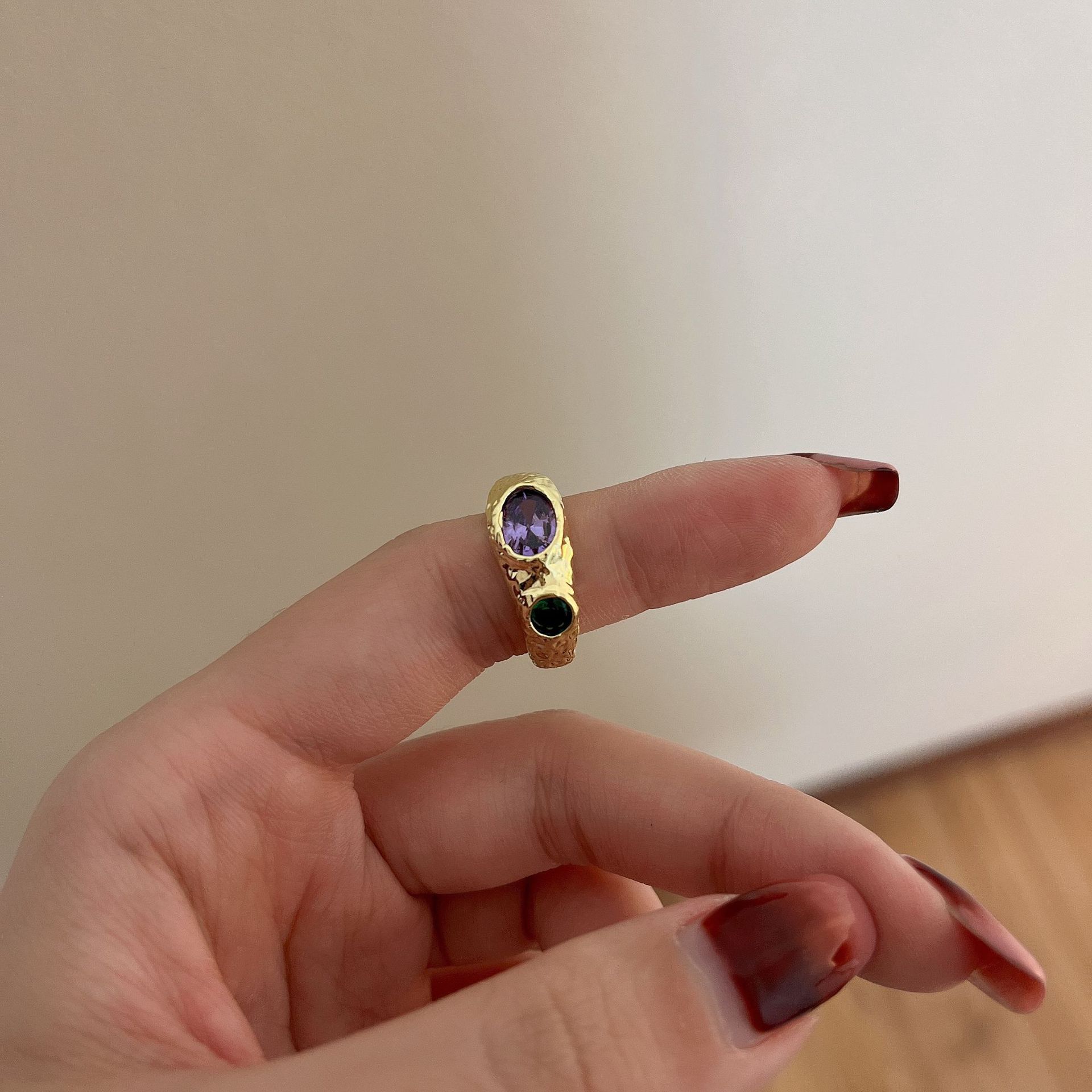 Product information:Type: Ring Color: gold three precious stones, silver three precious stones, gold two precious stones, Silver two precious stones Applicable population: Female Material: Alloy Style: ins style