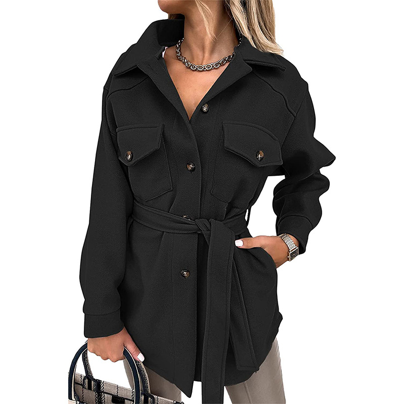 Season: Wintermid-length woolen coat with belt