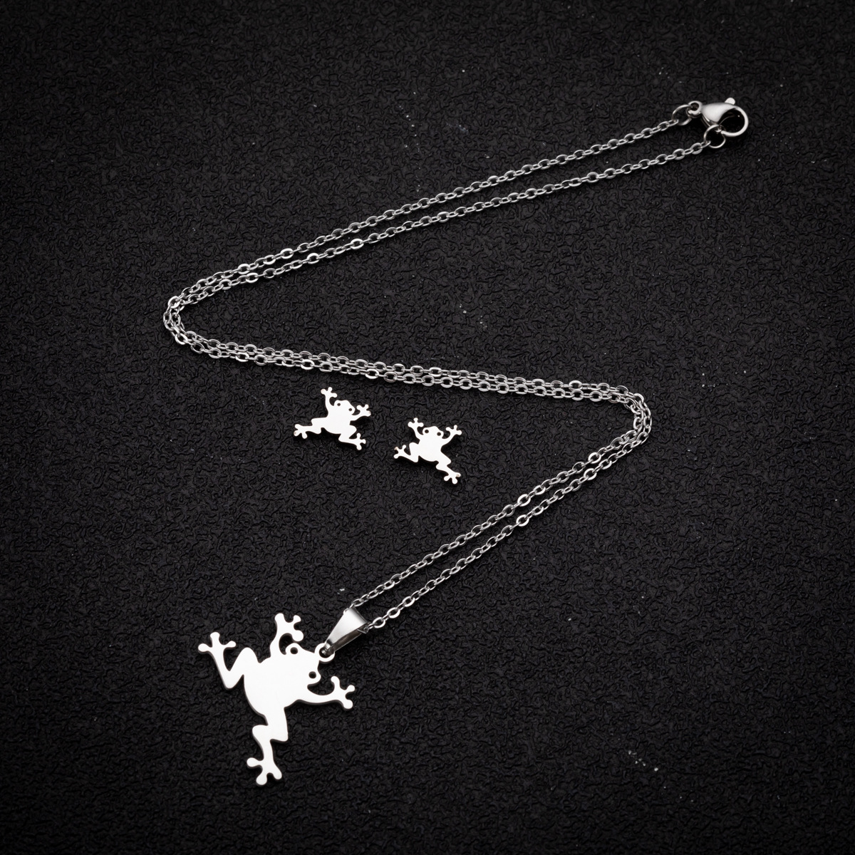 Product information:Treatment Process: Electroplating Color: gold, steel Style: Ladies Chain style: O-ring chain Material: Stainless steel Popular elements: Frog Suit combination: earrings necklace