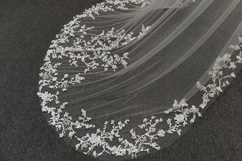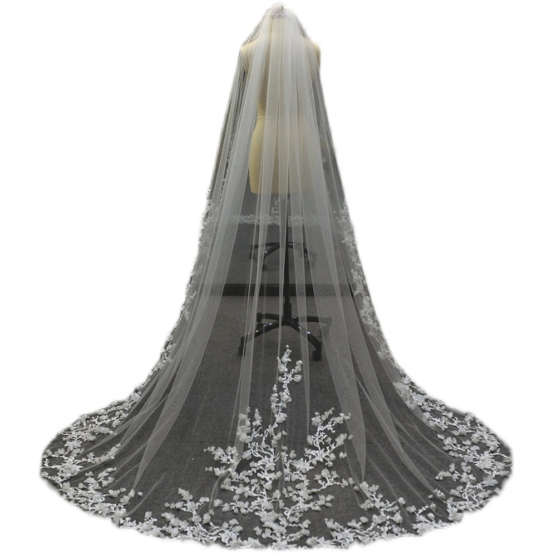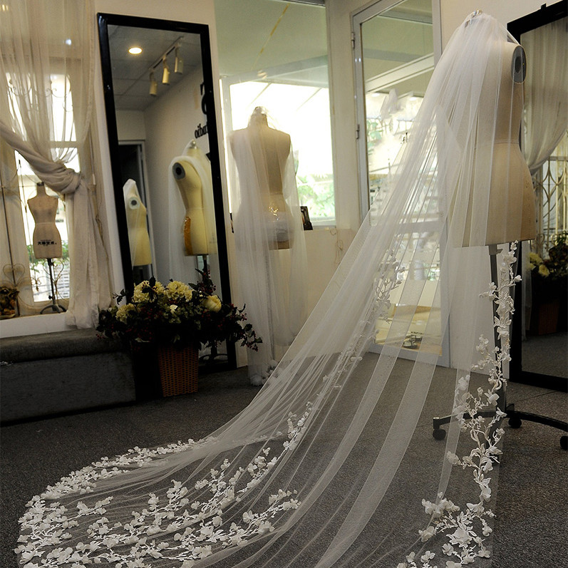 Bridal Fashion Trailing Lace Solid Color Veil