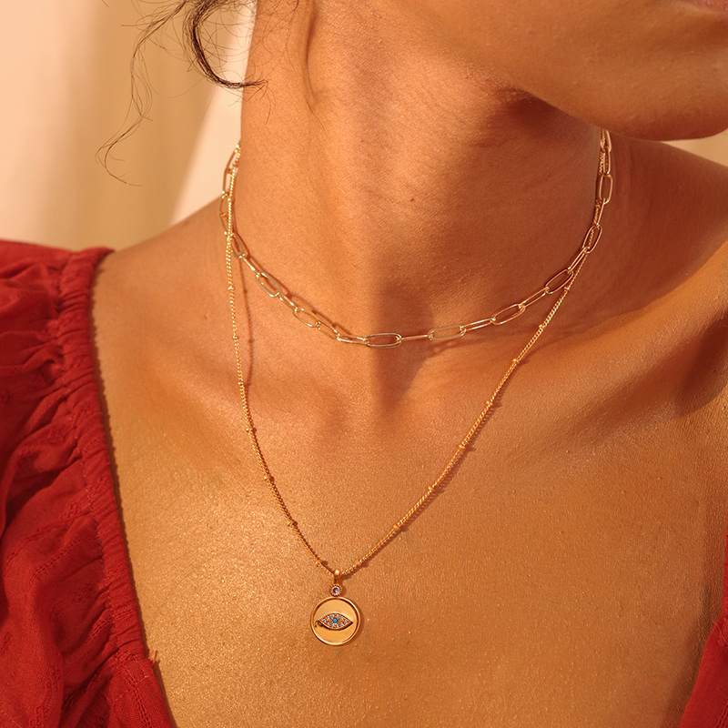 Color classification: golden blue eye plate necklace