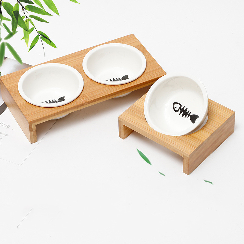 Specification: ceramic double bowl, ceramic single bowlMaterial: Wood[Product name] : primary color bamboo and wood ceramic bowlStyle: American style