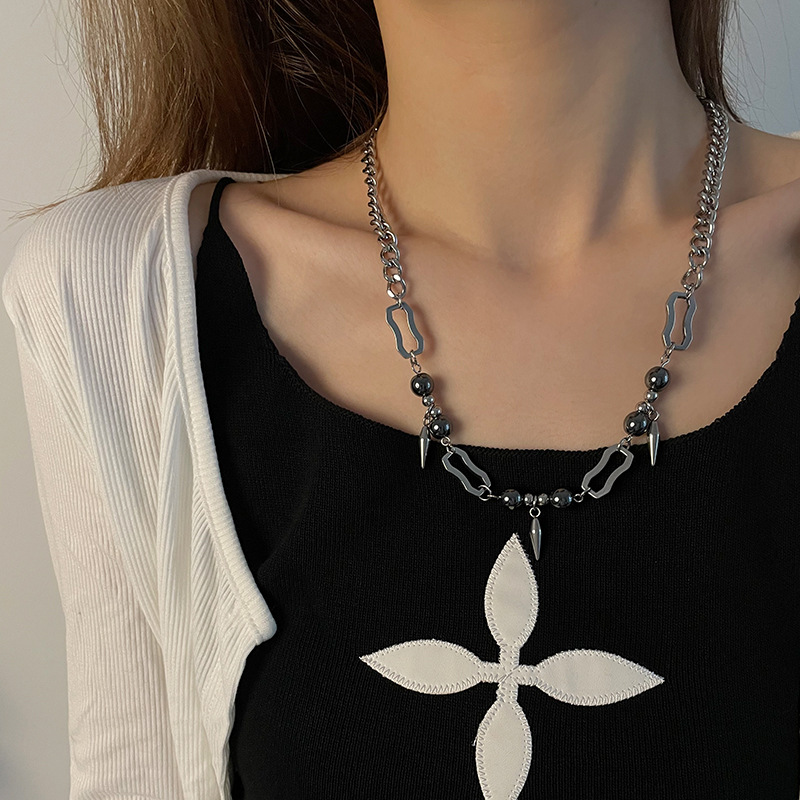Product information:Color: rivet necklaceApplicable people: UnisexPendant material: titanium steelChain style: O-shaped chainMaterial: titanium steelShape: GeometricPopular elements: irregular, chain, point RivetStyle: unisex style