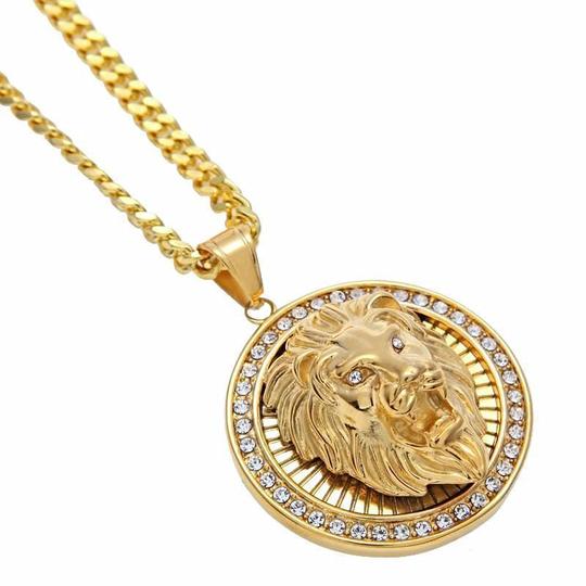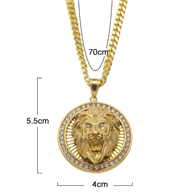 New Stainless Steel High-quality Lion Head Diamond Inlaid Three-dimensional Round Pendant