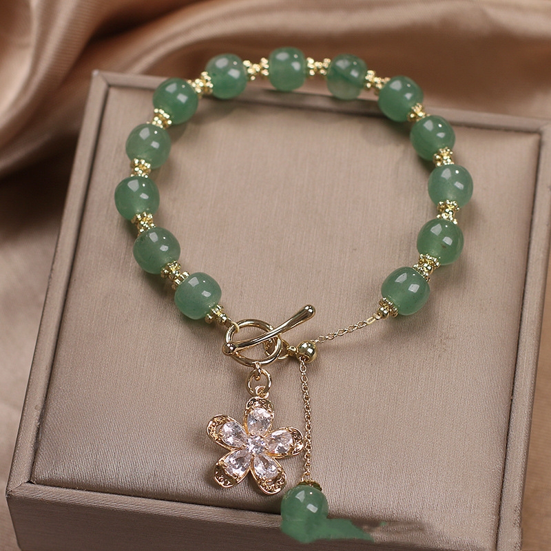 Natural Green Strawberry Quartz Women's Crystal Flowers Pendant Tassel Bracelet