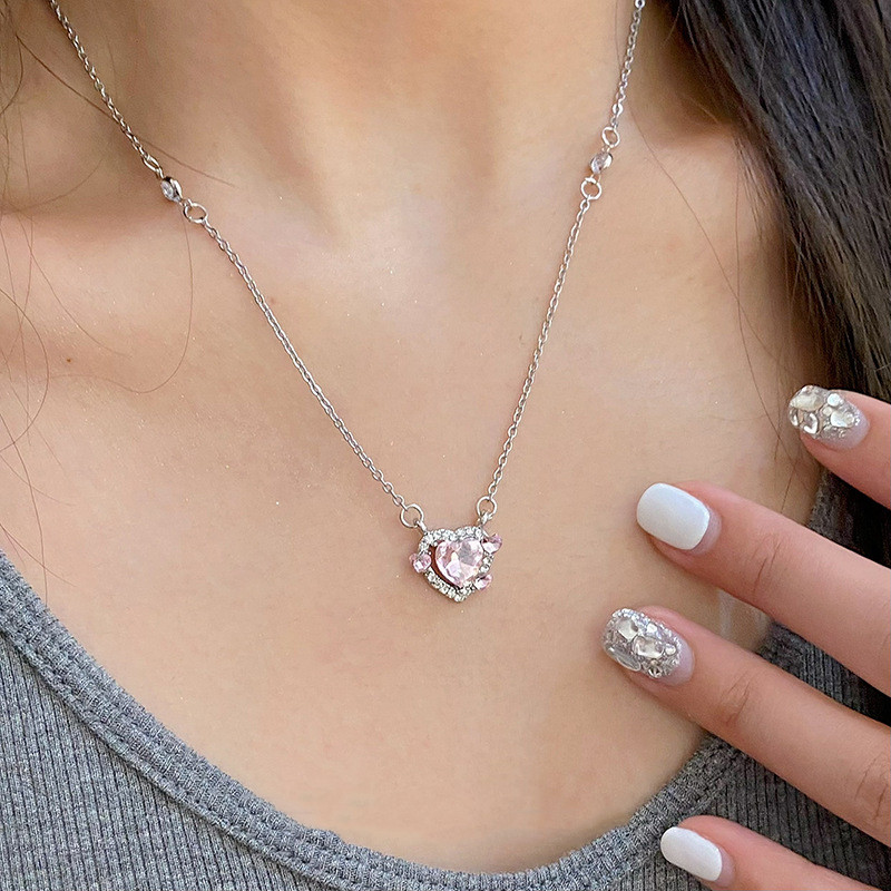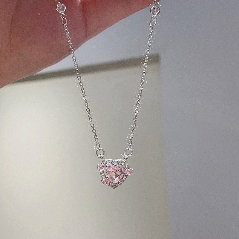 Product information:Color: Pink heart necklaceApplicable people: WomenPendant material: AlloyChain style: Cross chainMaterial: AlloyShape: Heart shapePopular elements: Love/heartStyle: Affordable luxury style
