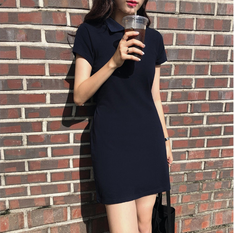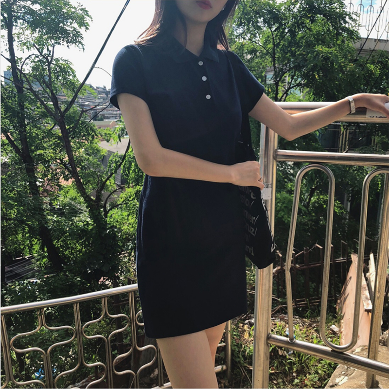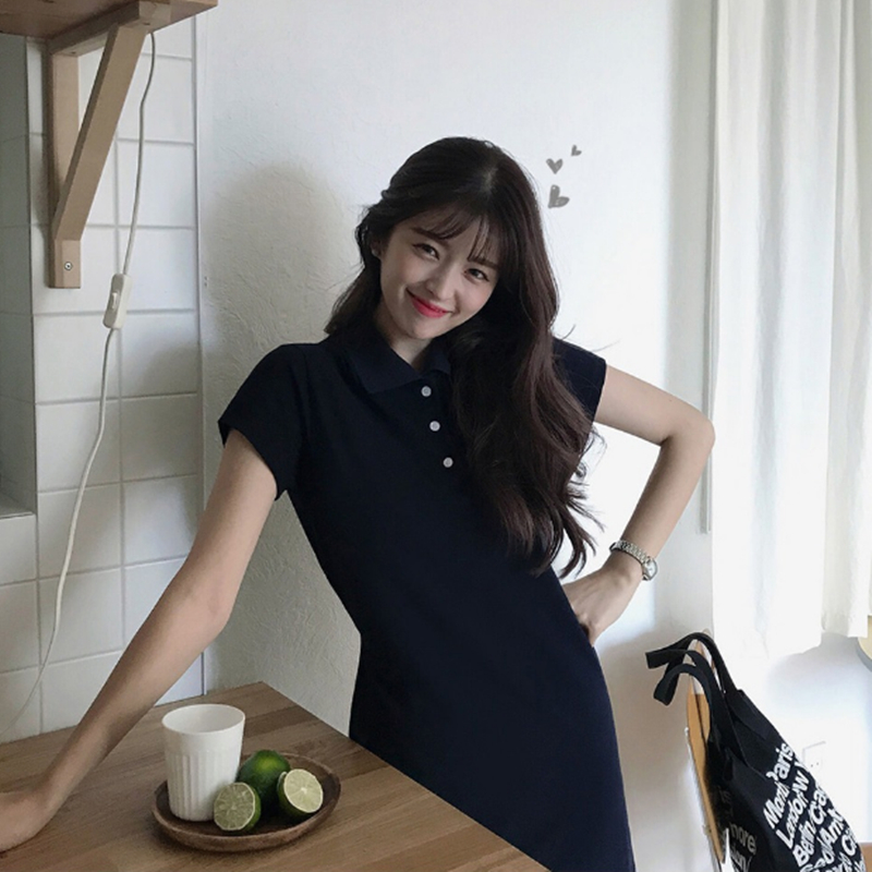 Material: Cottonpattern: plainStyle: sweetCollar type: POLO collarWaist type: elastic waistColor classification: navy bluePopular elements/craft: bow tie, pleating, tie, strap
