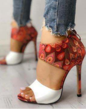 Buckle stiletto sandals ethnic print