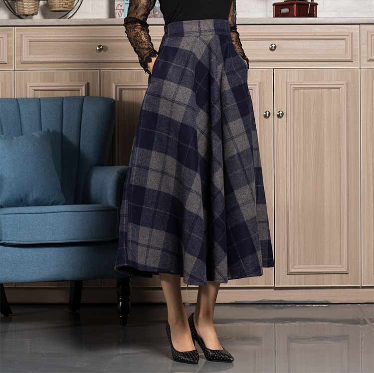 Style: sweetPattern: PlaidProcess: yarn-dyedFabric name: woolMain fabric composition: woolSkirt type: A-line skirtskirt length: long skirt
