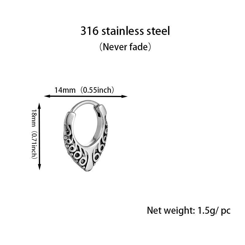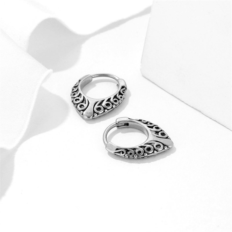 Product information:Treatment Process: ElectroplatingColor: Silver (single)Applicable people: UnisexMaterial: titanium steelShape: GeometricPopular elements: PlaidStyle: European and American