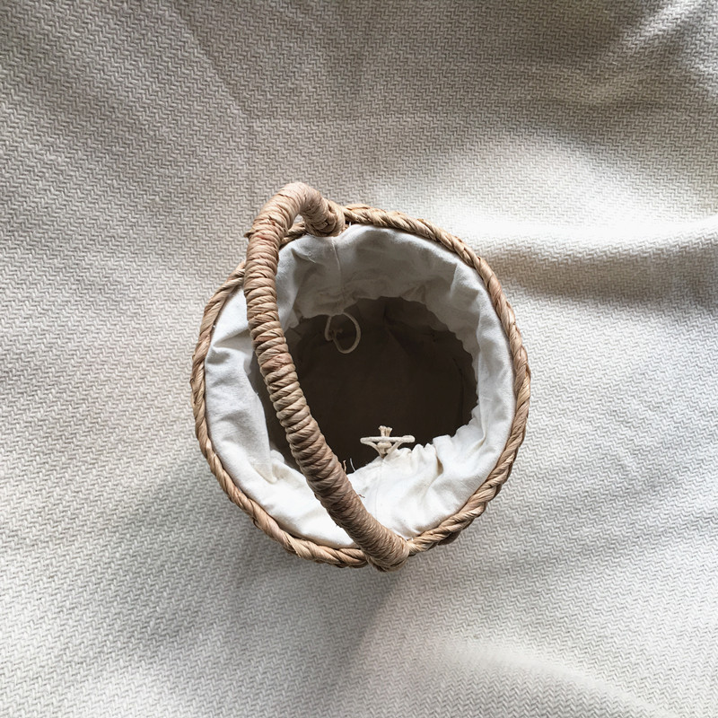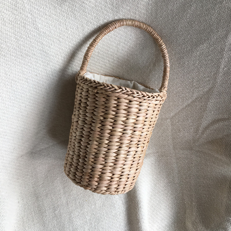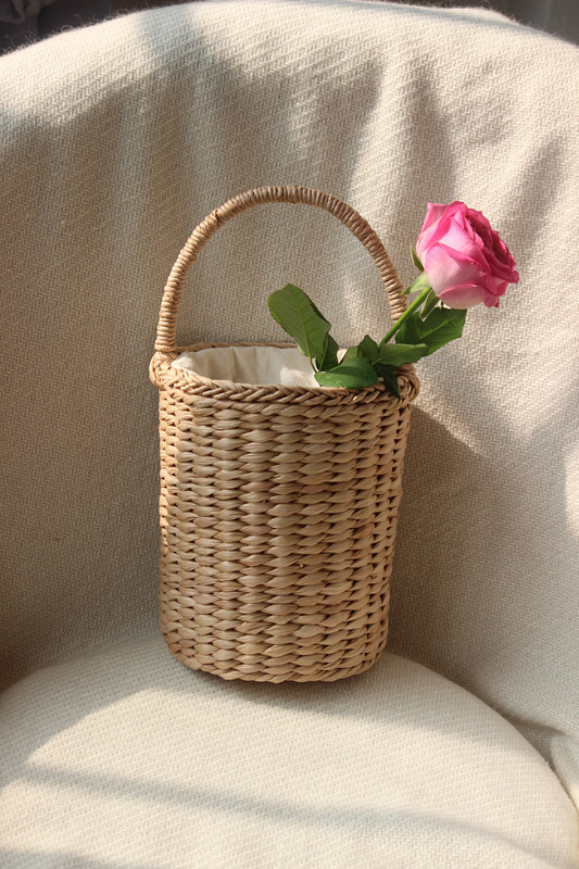 Specification:Material: Corn huskSize: 20cm high and 16cm wide cylindrical handbagStyle: Japanese and korean styleMaterial: StrawPacking list: