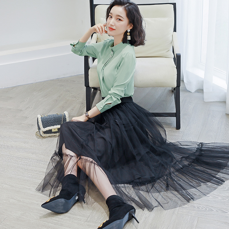 Color: white, white shirt +1056 black skirt, white shirt +8056 black pants, green shirt, green shirt +8056 apricot pants, green shirt +8011 black pants, green shirt +1059 mesh skirt