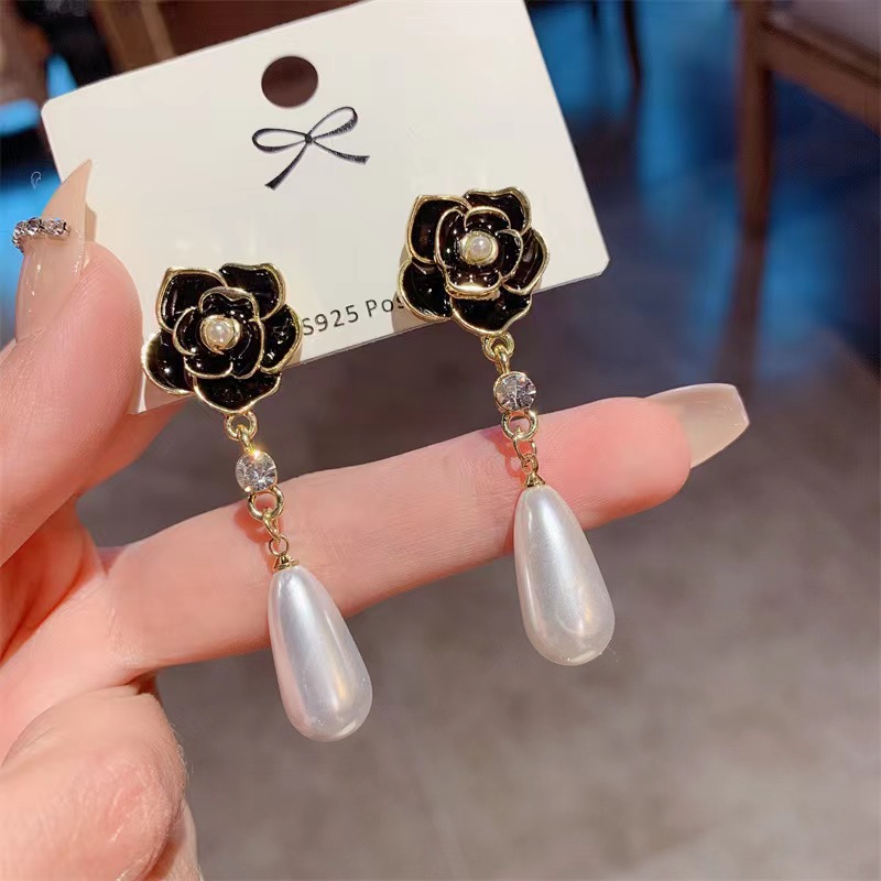 Product information:Color: Camellia earrings black, camellia earrings whiteMaterial: AlloyShape: GeometricPopular elements: CamelliaStyle: Retro