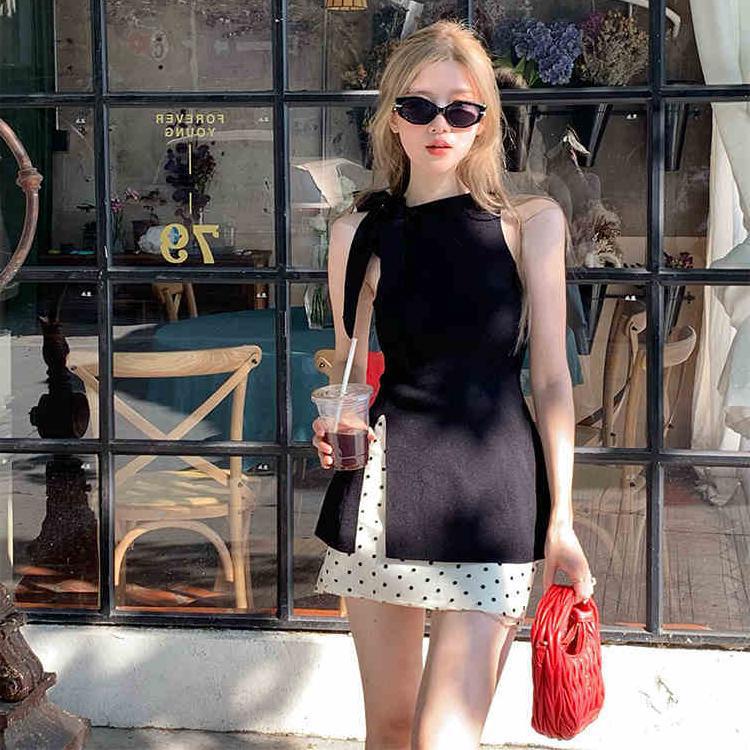 Color: black vest, polka dot short skirt, suit