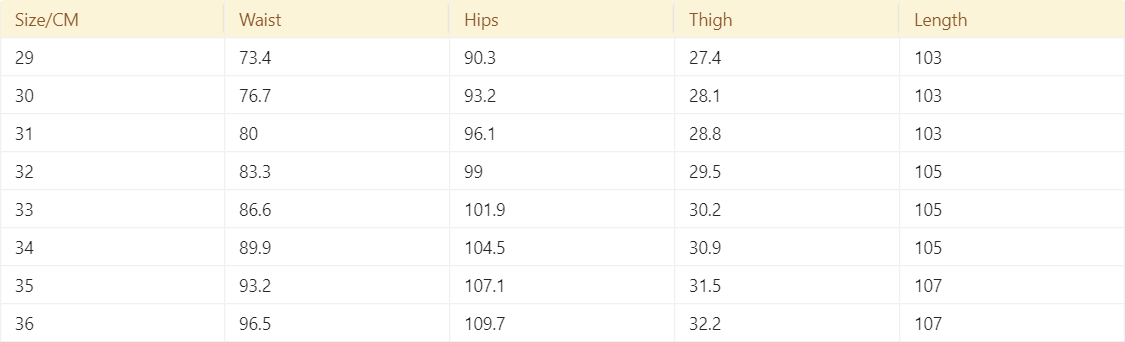 Size: 29, 30, 31, 32, 33, 34, 35, 36