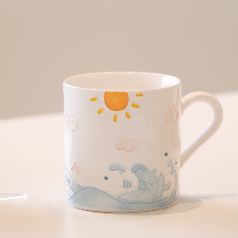 Name: Embossed hand-painted wave teacup