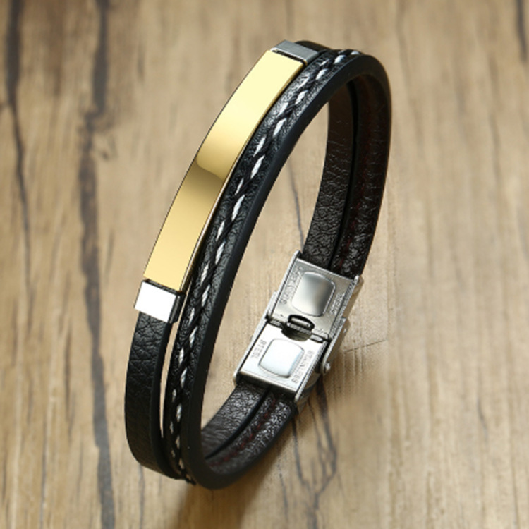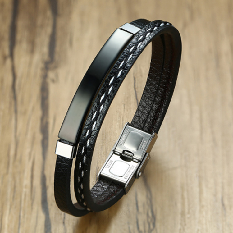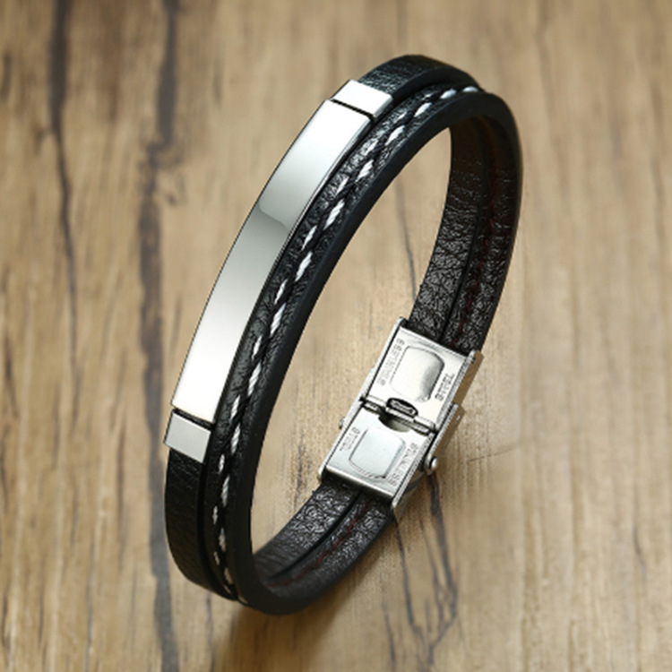 Product informationStyle: Europe and AmericaMaterial: leather rope stainless steelType: BraceletStyle: UnisexModeling: GeometryPackaging: Individually packed