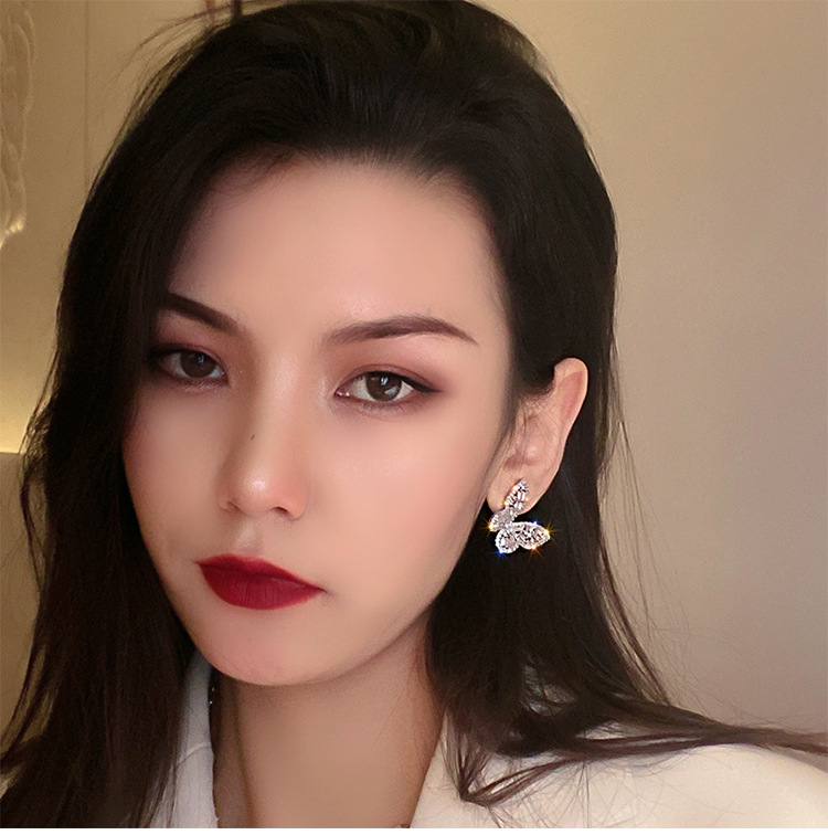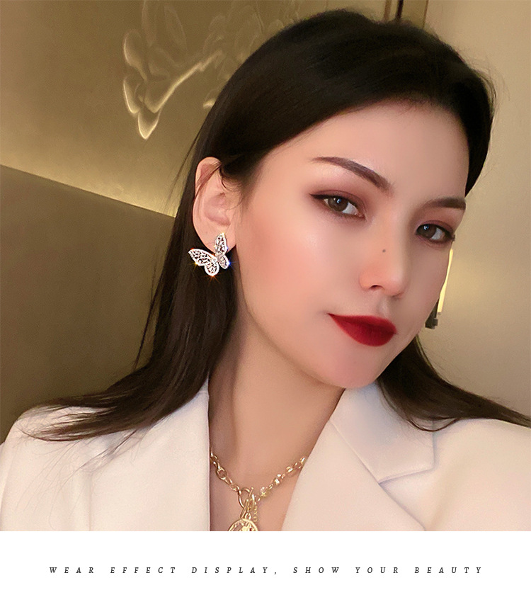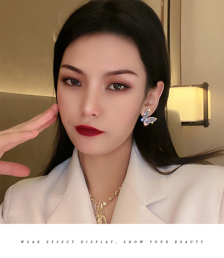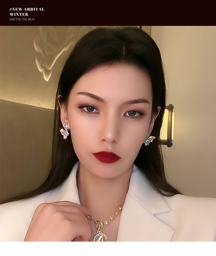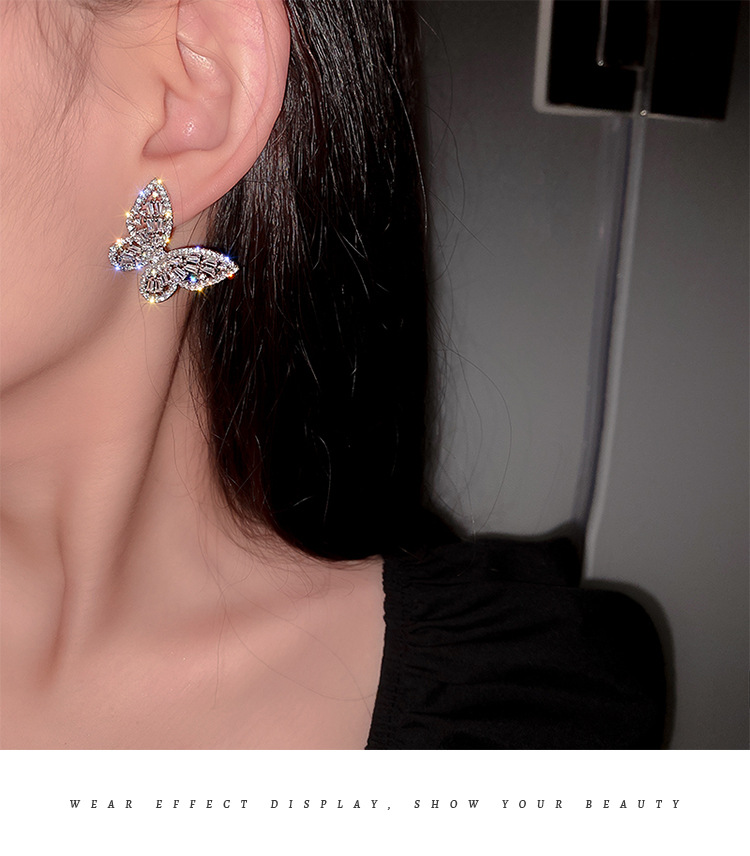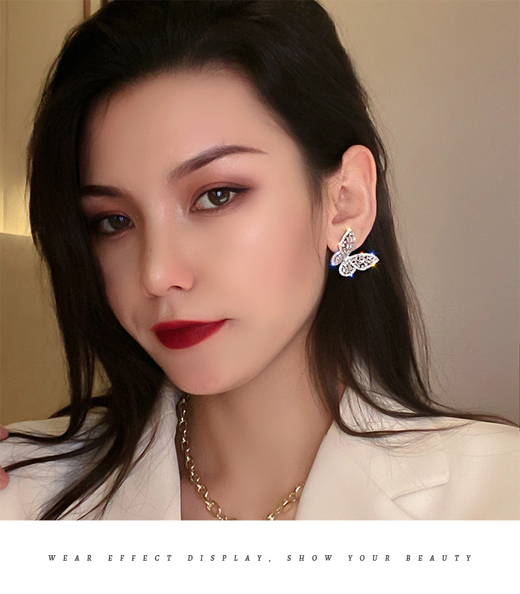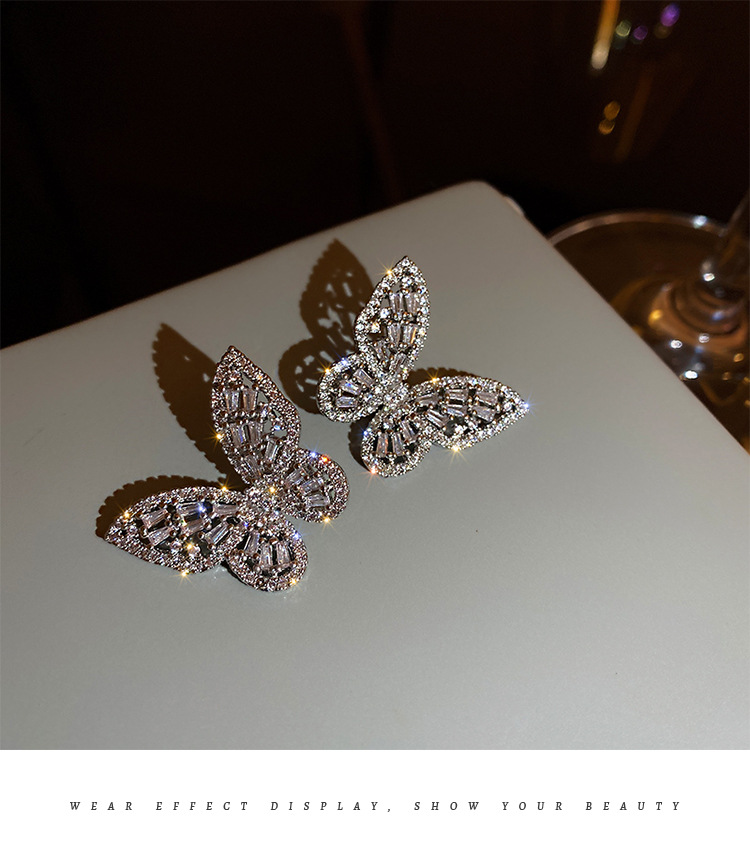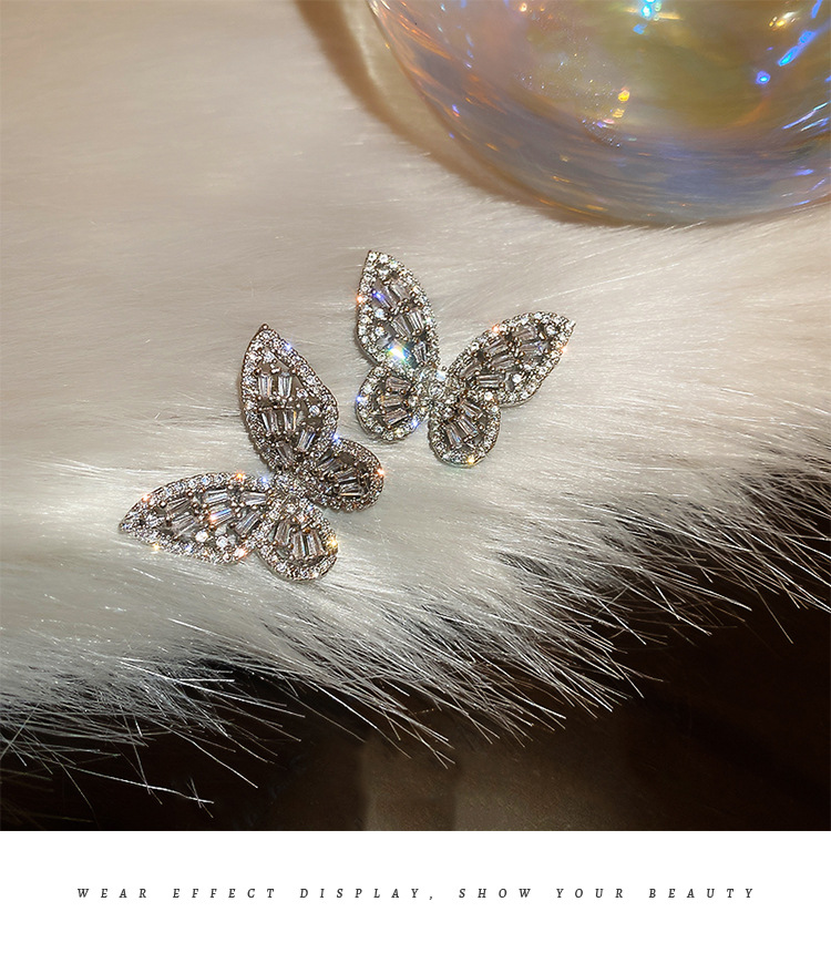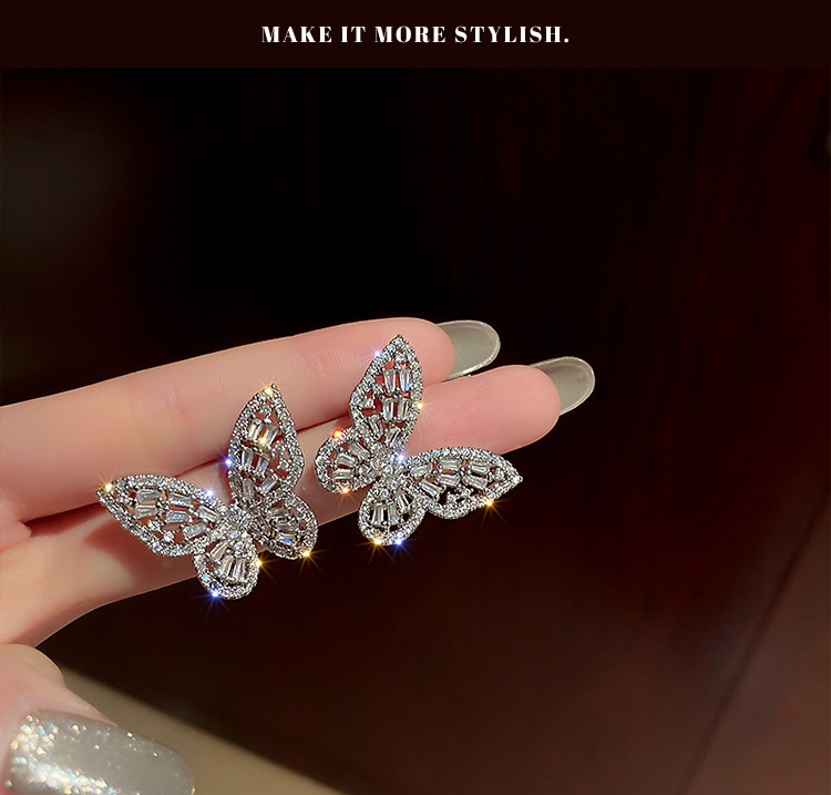 Silver Stud Rhinestone-encrusted Zircon Butterfly Studs