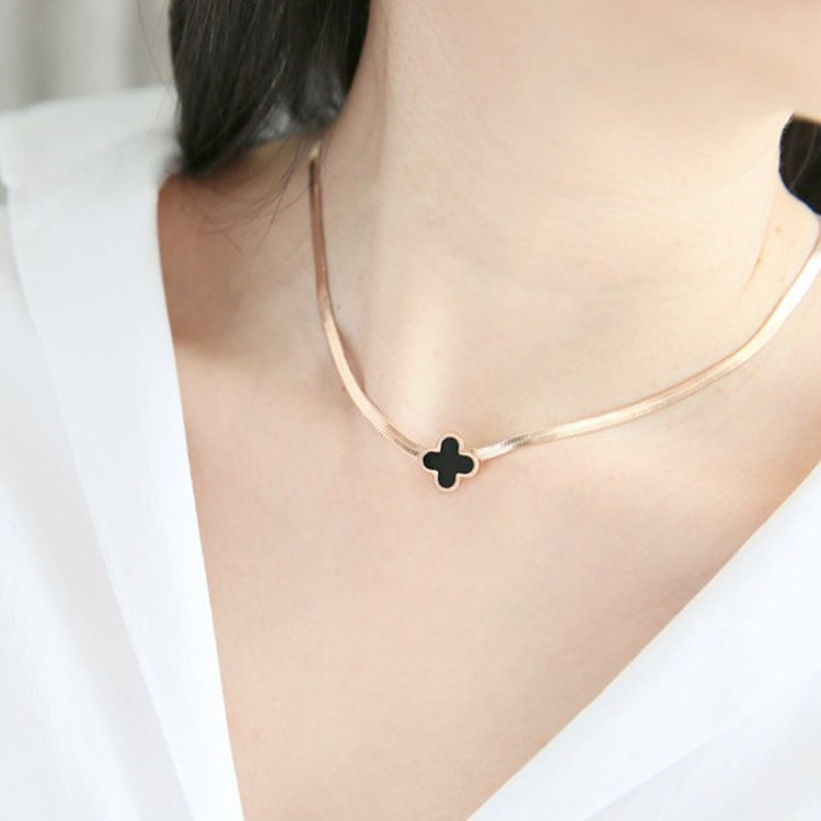 South Korea version of fashion 18K rose gold clover female simple clavicle titanium ornament accessories pendant chain