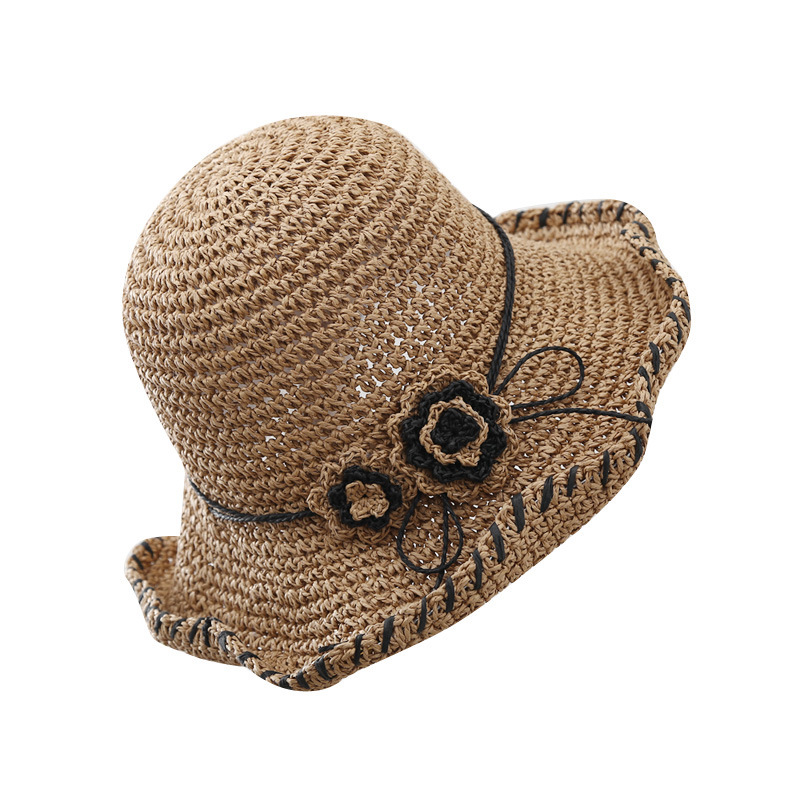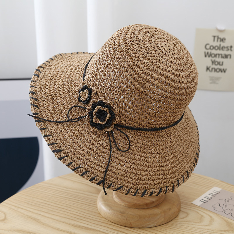 Color: beige/contrast color flower straw hat, khaki/contrast color flower straw hat