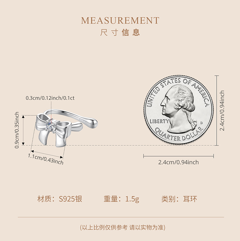 Product information:Treatment Process: Electroplating Color: ear studs, ear clips Applicable population: Female Material: Silver Purity: 925 silver Popular elements: Bow Style: affordable luxury style