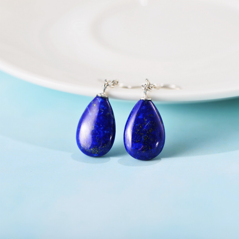[Name] :Water drop lapis lazuli earrings[Material] 925 silver; lapis lazuli[Size]: Approximately 1cm in width and 3.9cm in length[Weight]: About 3.5g[Remarks]: Length includes ear hook!