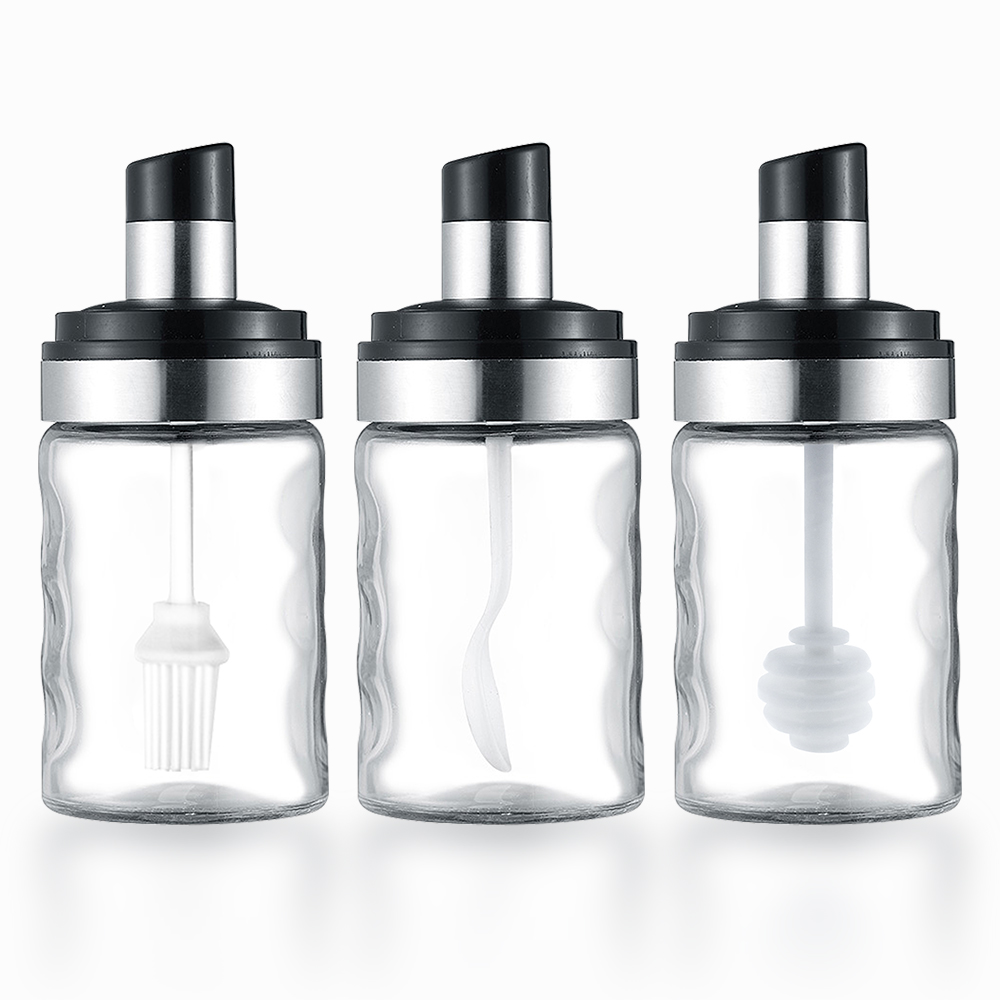 Product Name: Glass Seasoning JarCapacity: 250mlMaterial: PP resin, borosilicate glass, silica gelFeatures: sealed and leak-proof