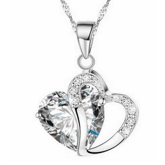 Korean Style Peach Heart Shaped Zircon Crystal Necklace