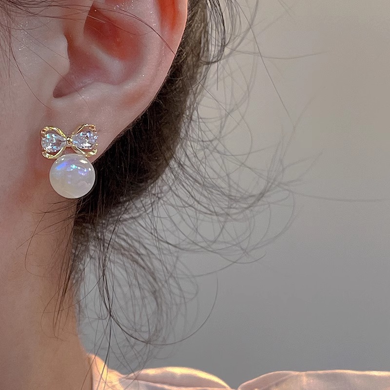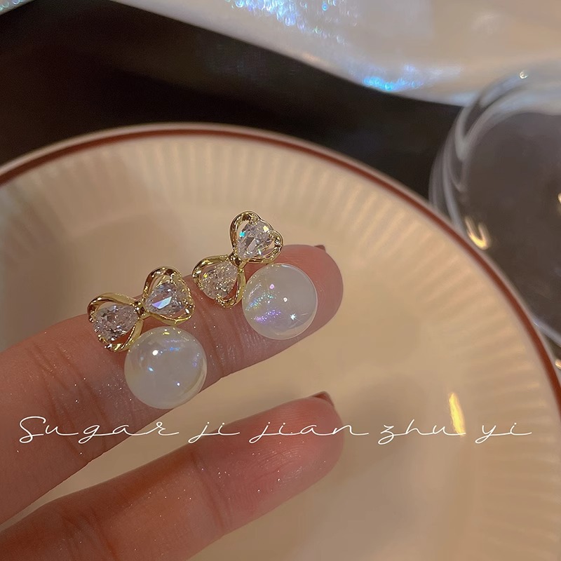Sterling Silver Needle Unique Design Man Yuji Pearl Earrings Light Luxury Zircon