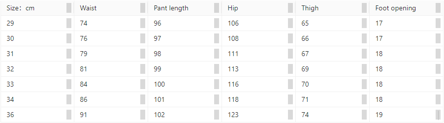 Sizes: 29,30,31,32,33,34,36,38