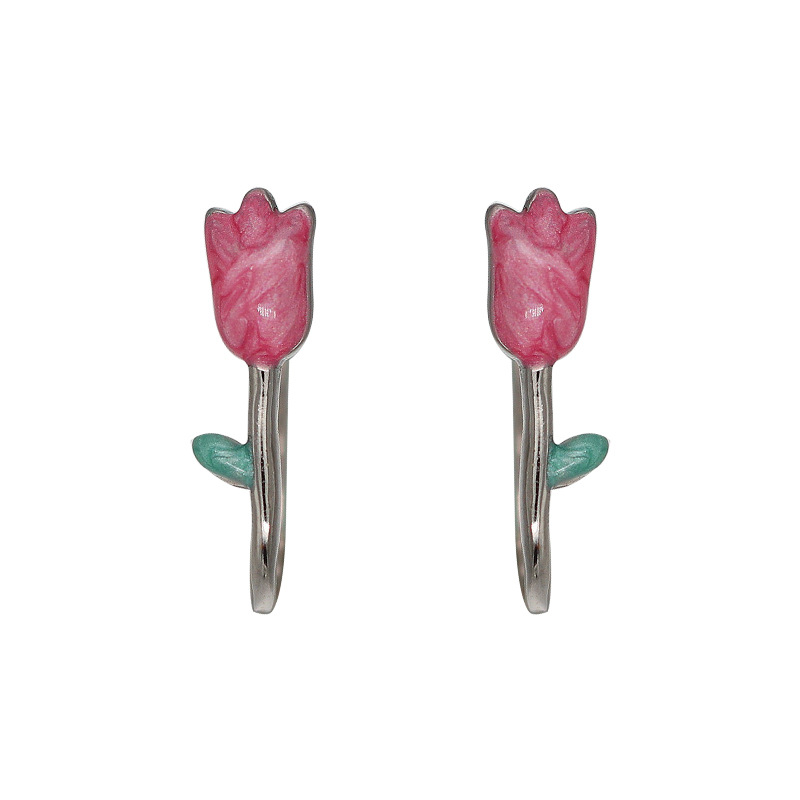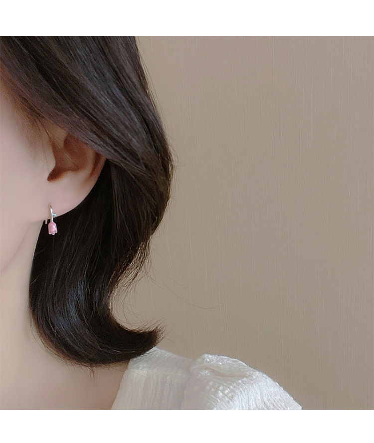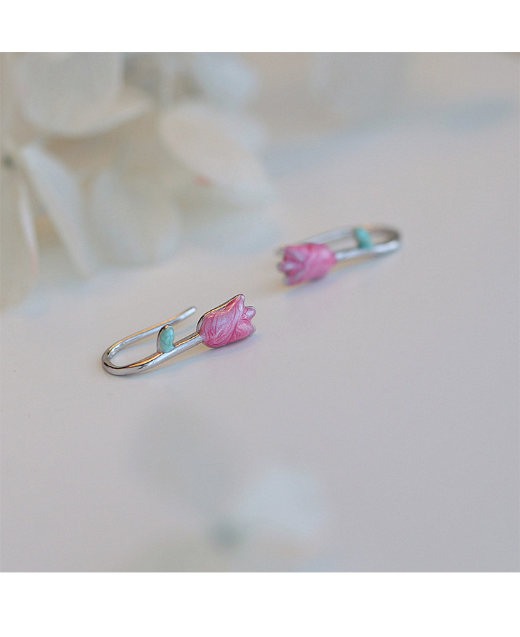 Sterling Silver Tulip Flower Stud Earrings Sweet Mini All-match Women