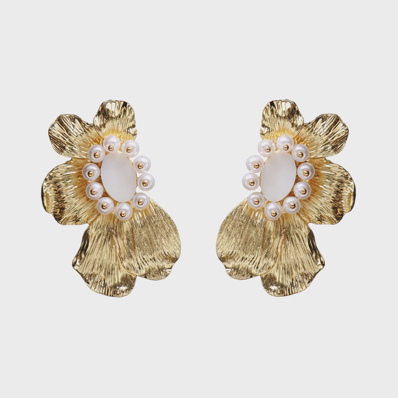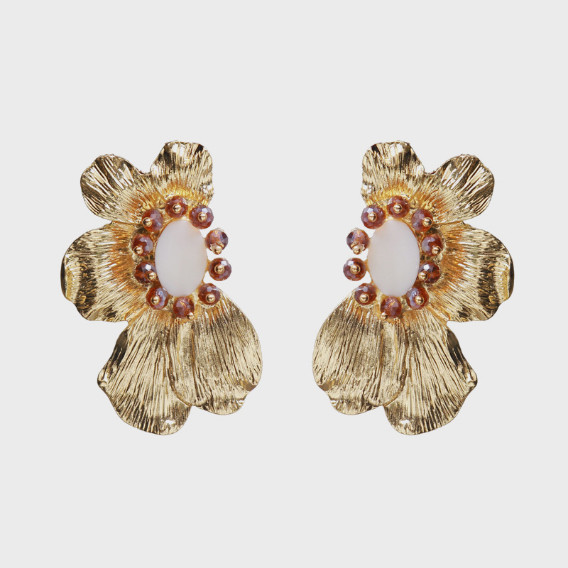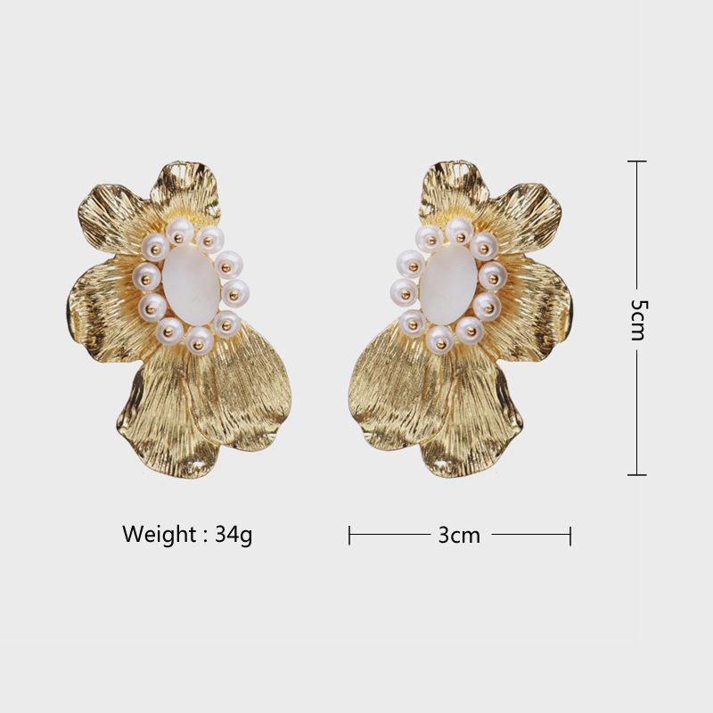European And American Exaggerated Big-name Alloy Flower Earrings Women's Fashion Autumn And Winter